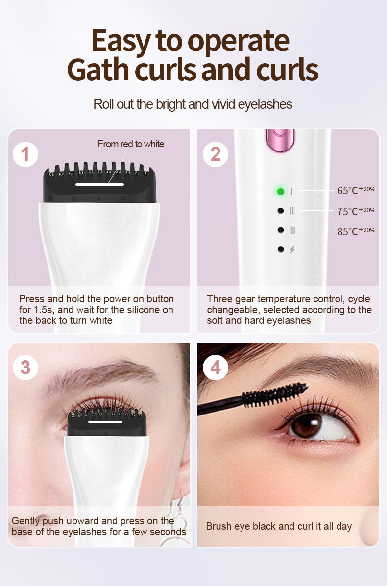 Rechargeable Heated Eyelash Curler – 3 Temperature Settings, 30s Rapid Heating & Anti-Scald Design