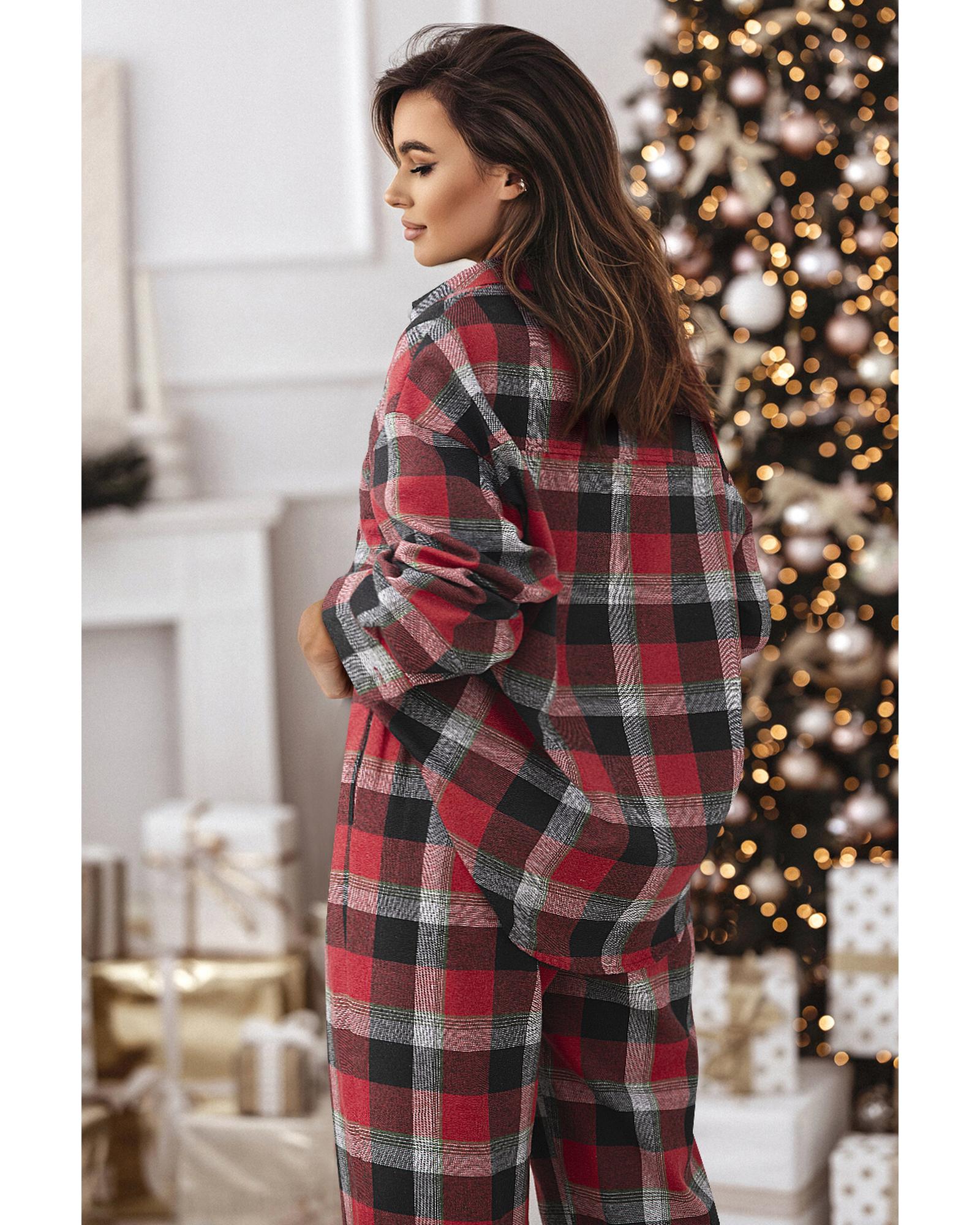Red Christmas Checkered Pattern Loose Shirt and Pants Lounge Set – S