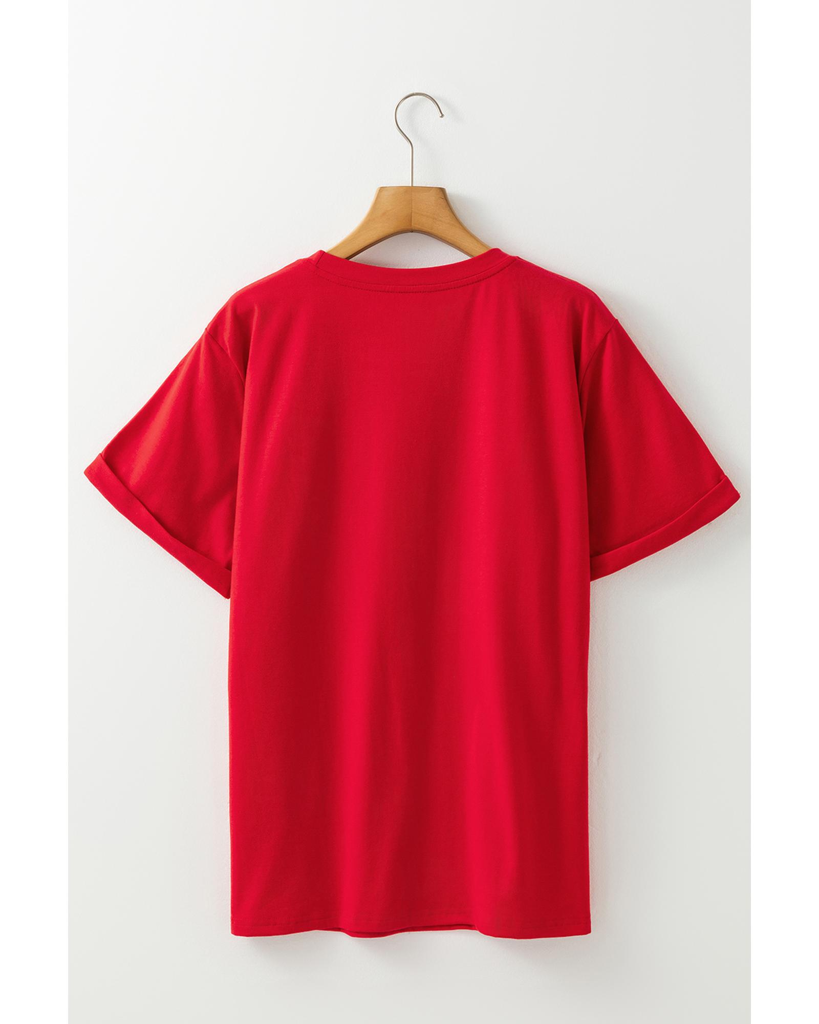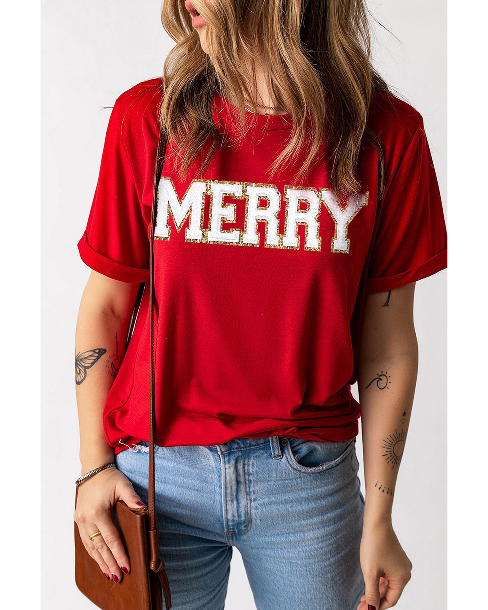 Red Christmas MERRY Graphic Cuffed Sleeve T Shirt – L