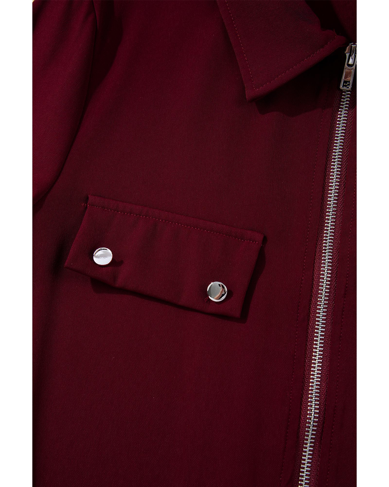 Red Dahlia Collar Tab Sleeve Zip Up Flap Detail Jacket – XL