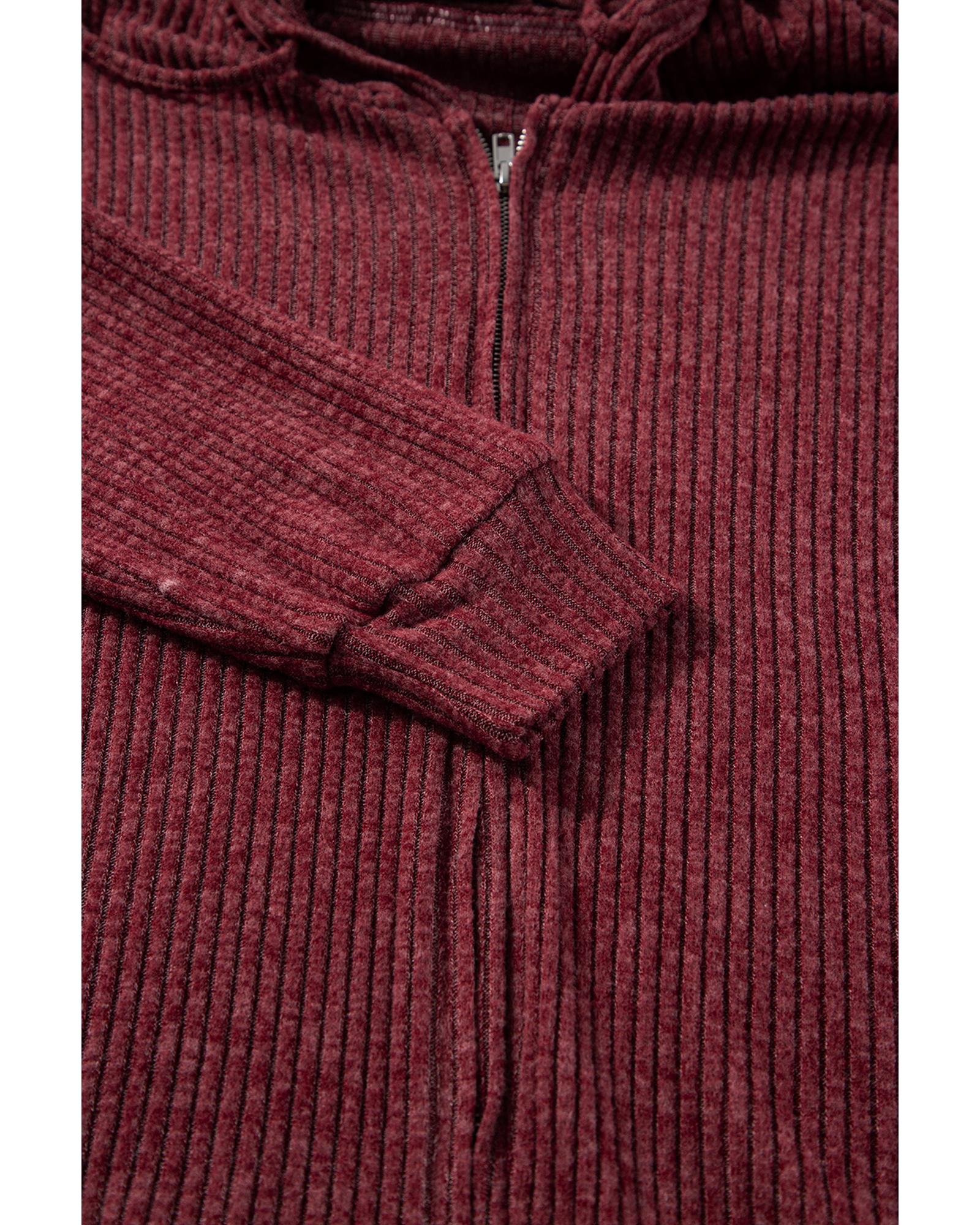 Red Dahlia Ribbed Zip Up Front Drawstring Hoodie – S