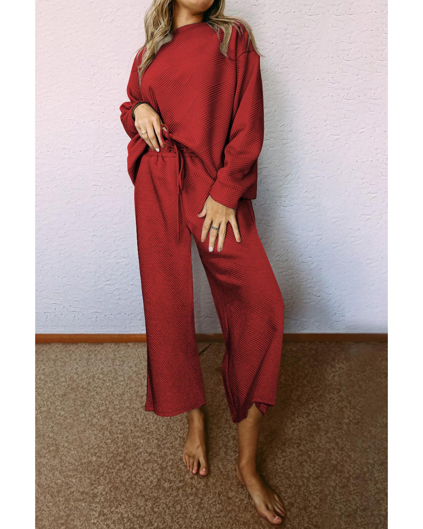 Red Dahlia Ultra Loose Textured 2pcs Slouchy Outfit – XL
