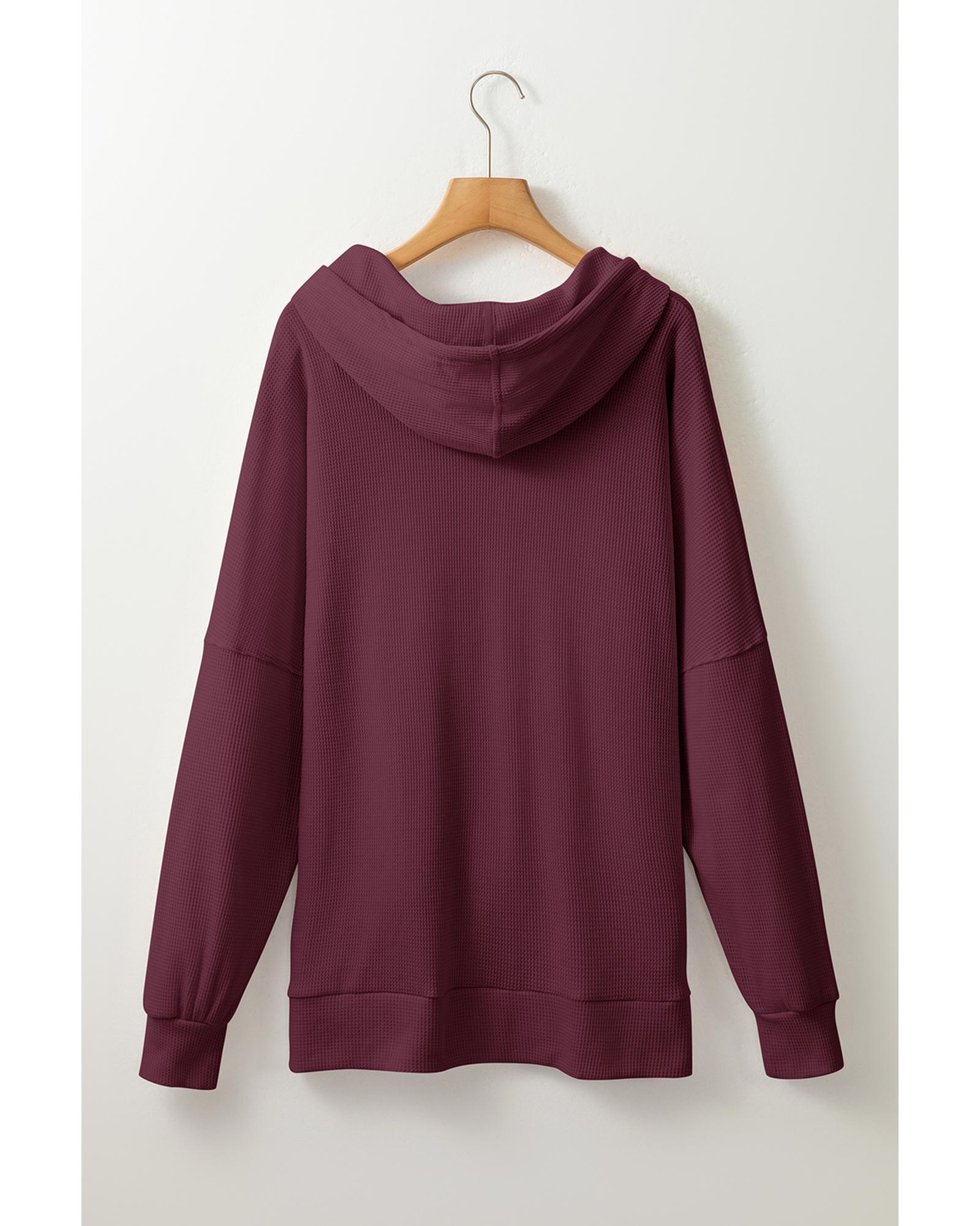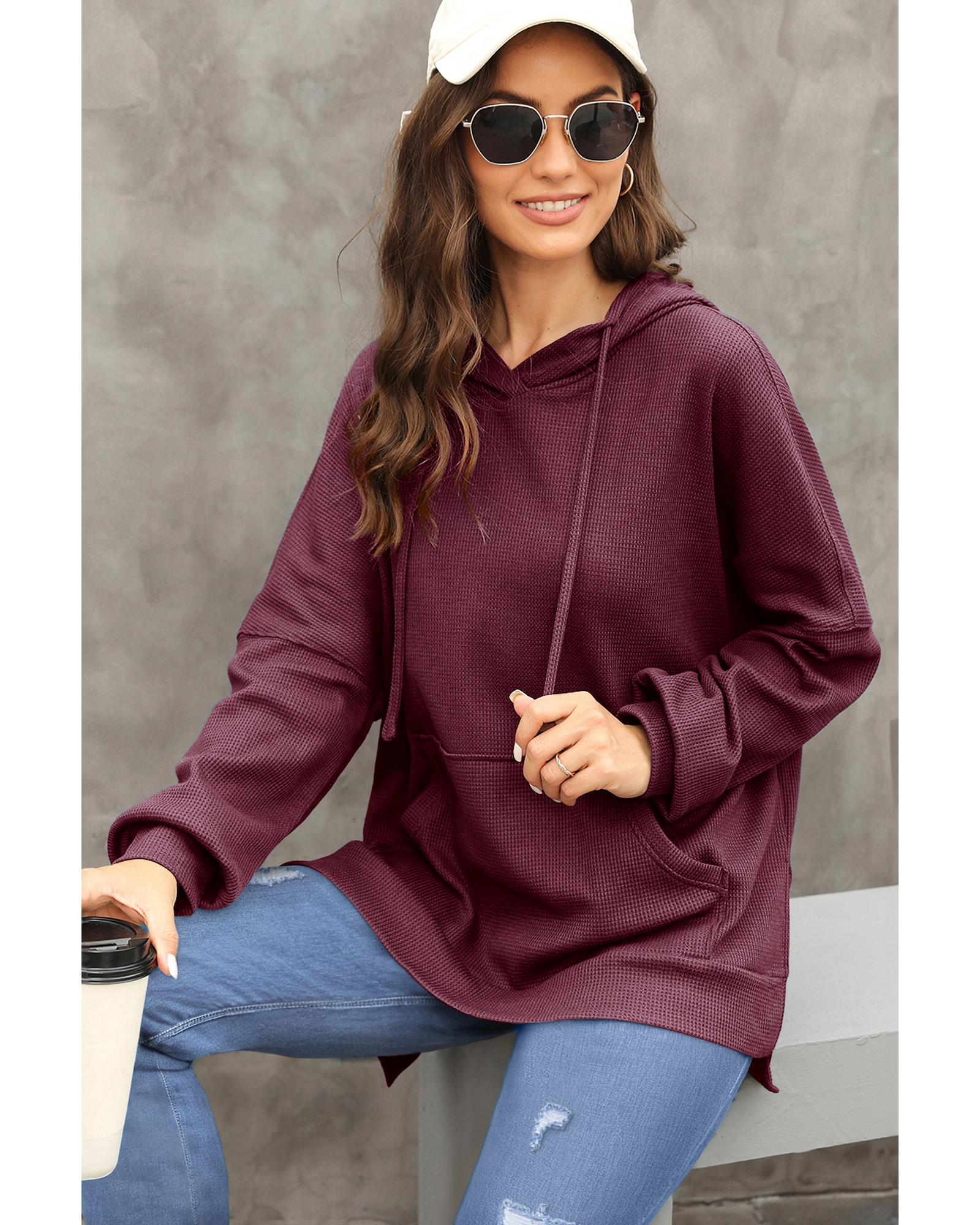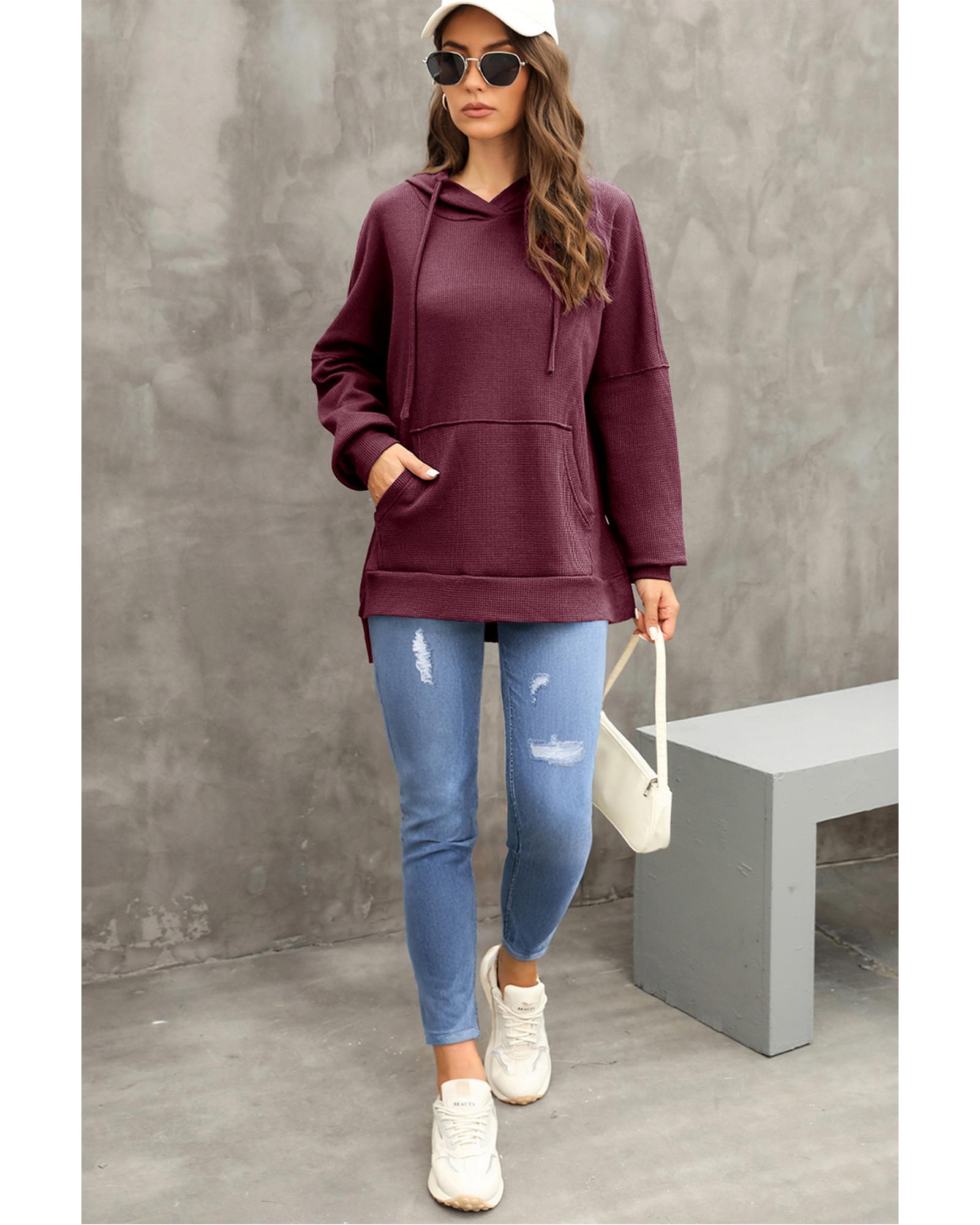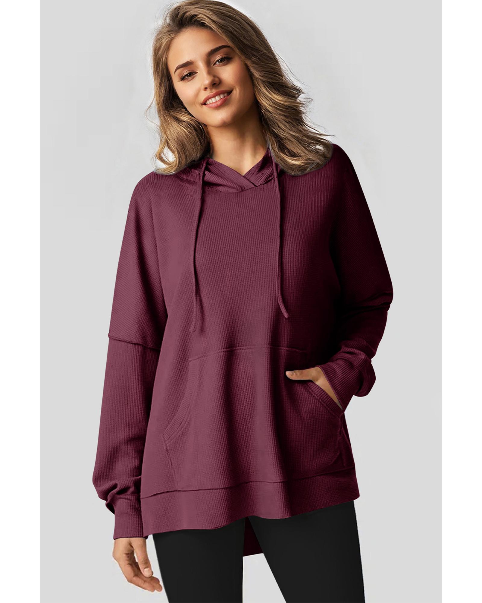 Red Dahlia Waffle Knit Fleece Lined High Low Oversized Hoodie – S