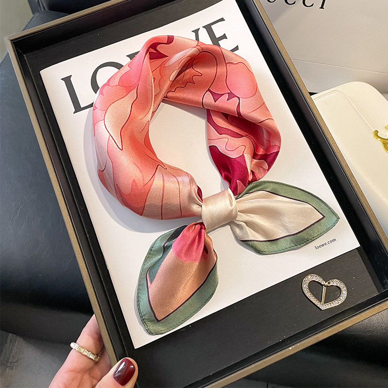 Perfect as a neck scarf, headscarf, or accessory for your bag, this versatile silk scarf is a must-have addition to any woman’s wardrobe. It also makes a thoughtful and stylish gift for any special occasion.
