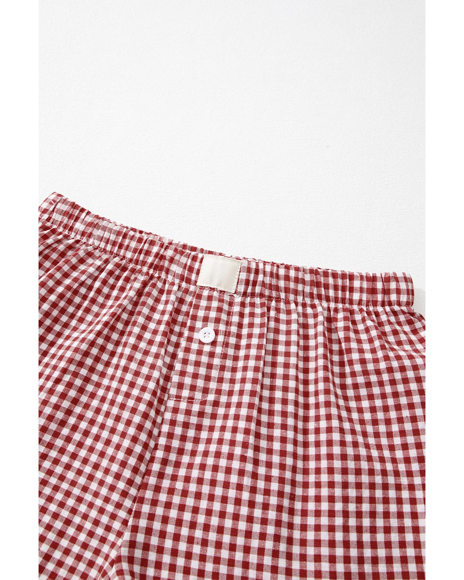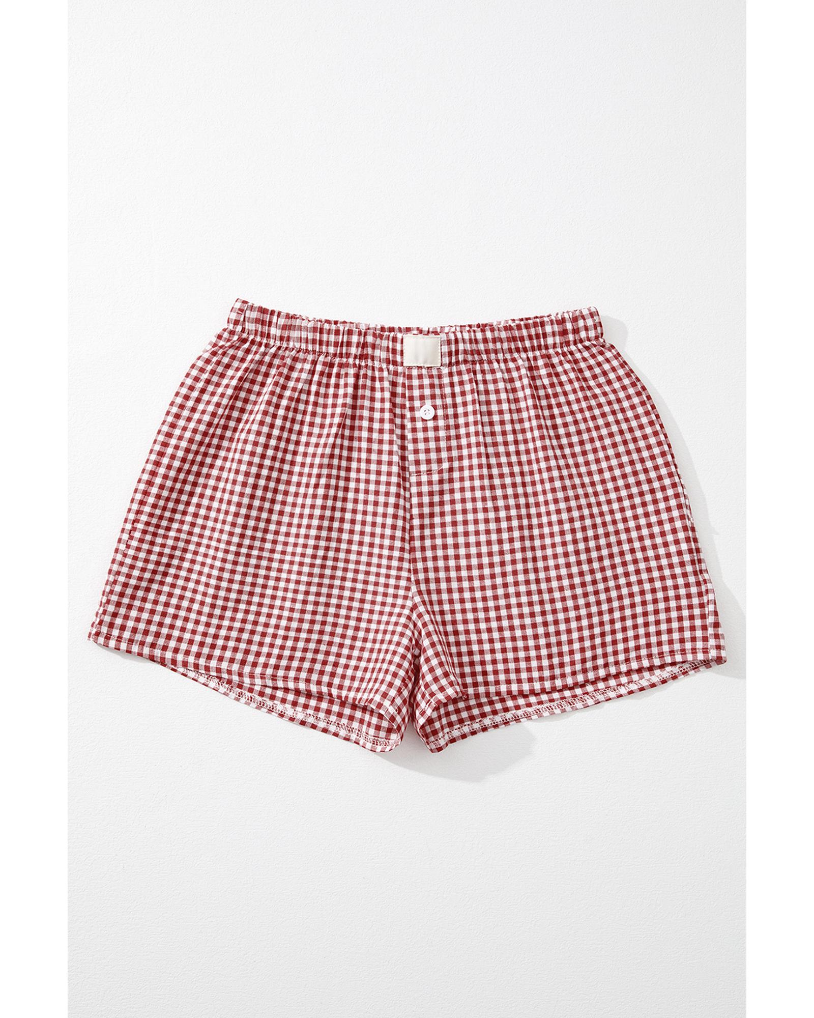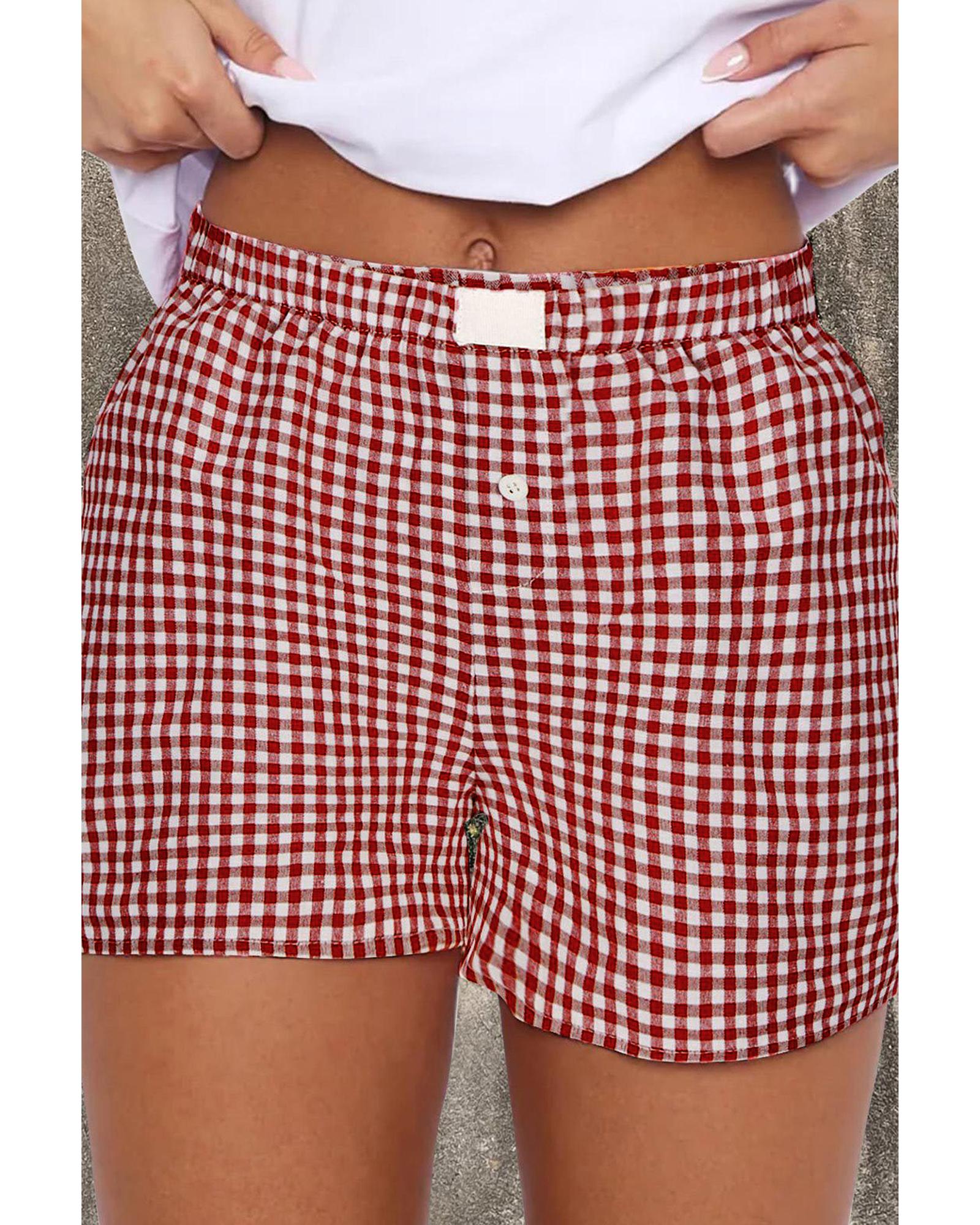 Red Plaid Gingham Printed High Waist Shorts – XL