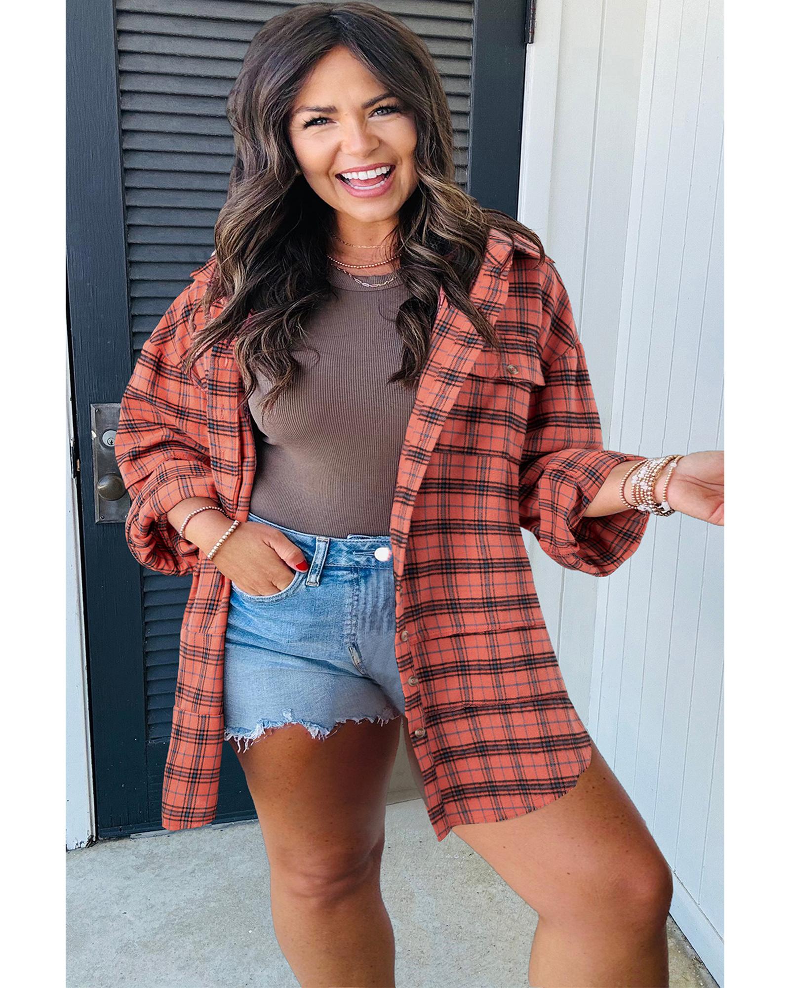 Red Plaid Long Sleeeve Side Split Distressed Hem Shirt - M Original price was: $76.99.Current price is: $41.99.