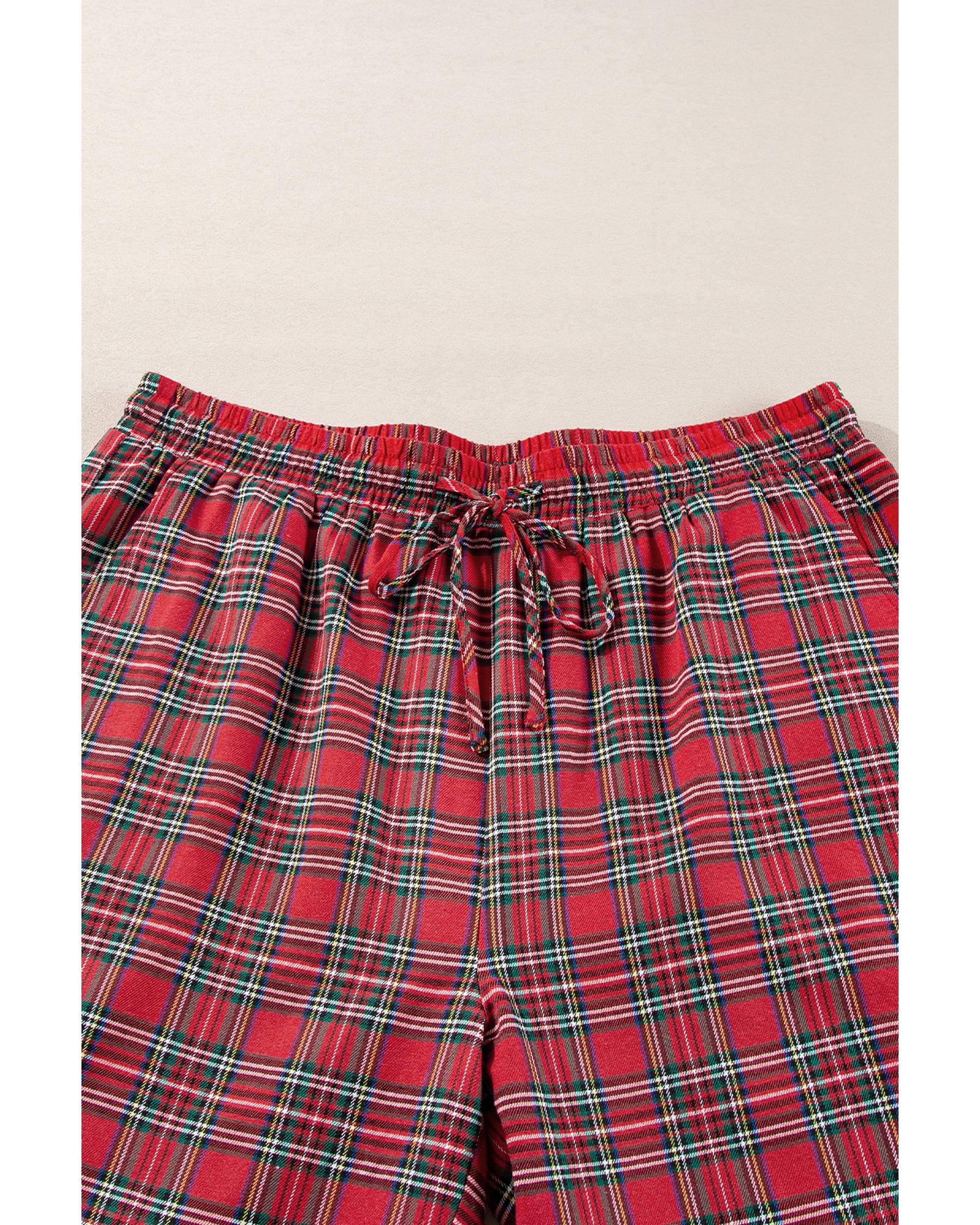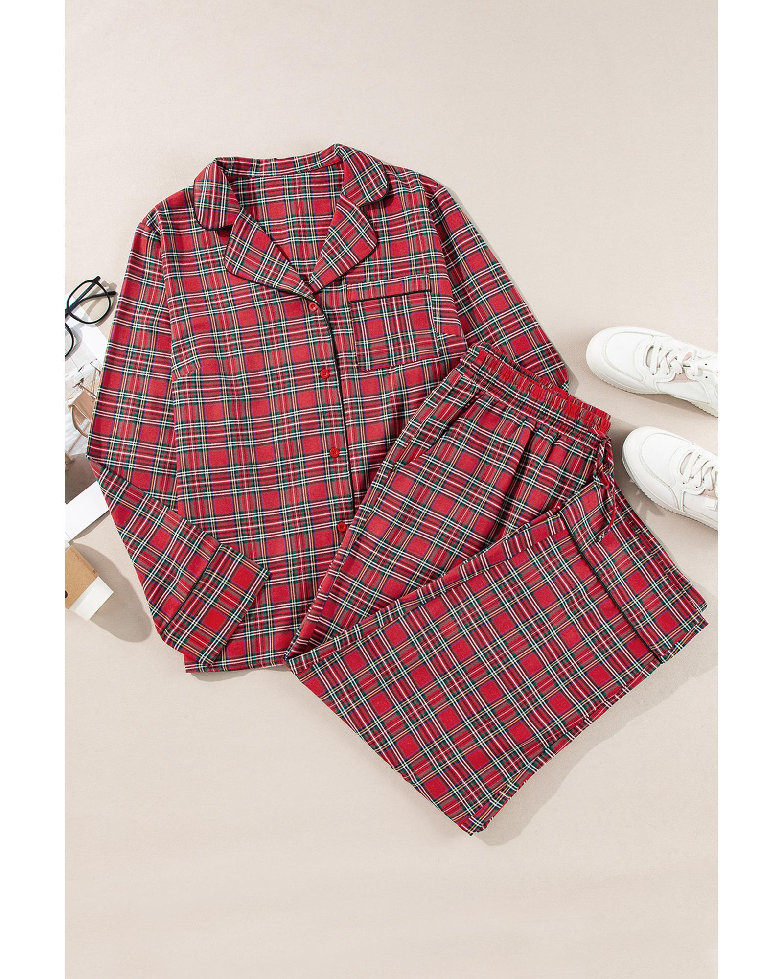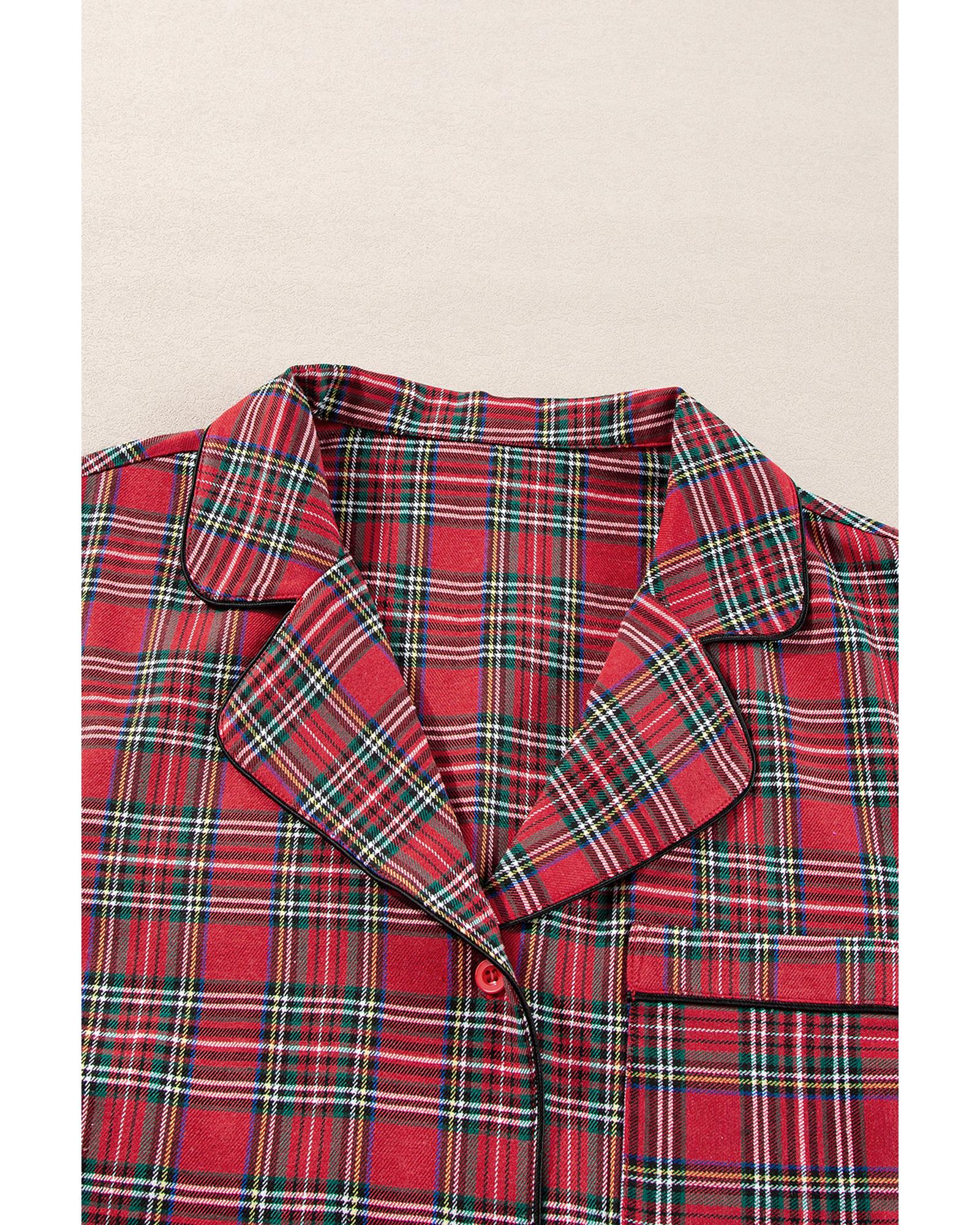 - Red Plaid Printed Shirt and Pants Plus Size Lounge Set