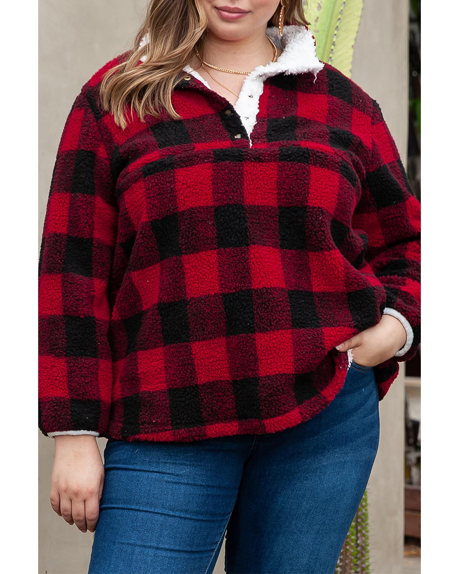 Red Plus Size Buffalo Plaid Sherpa Henley Sweatshirt – 2X