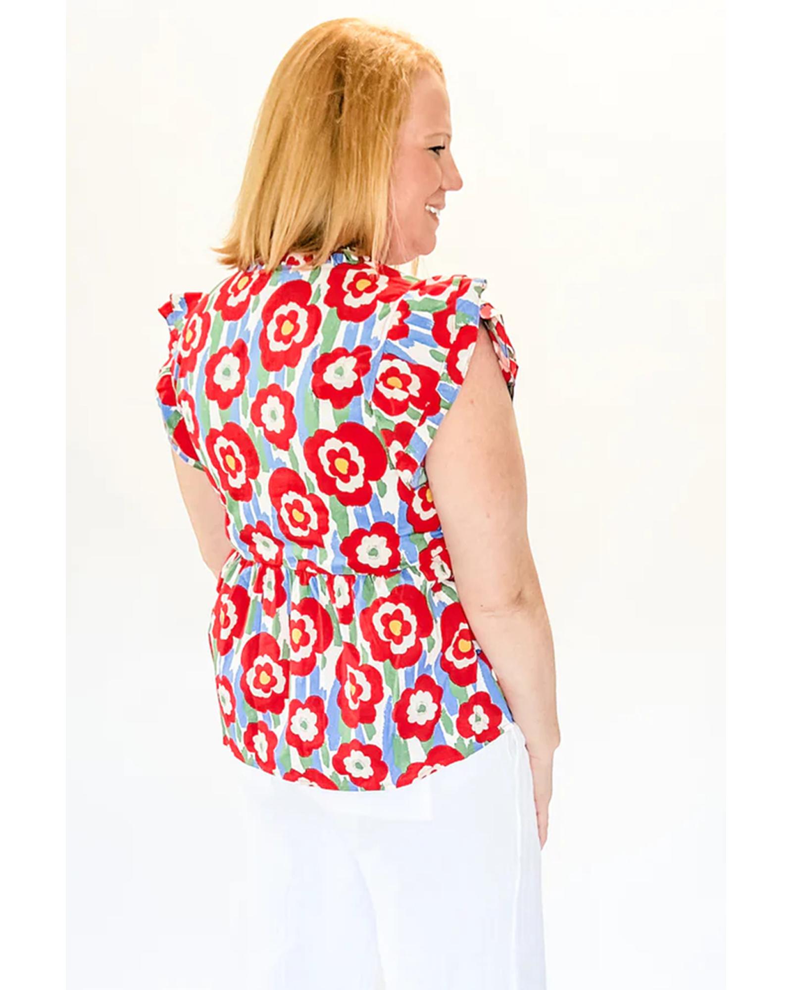 Red Plus Size Floral Print Ruffle Trim Split Neck Peplum Top – 4X