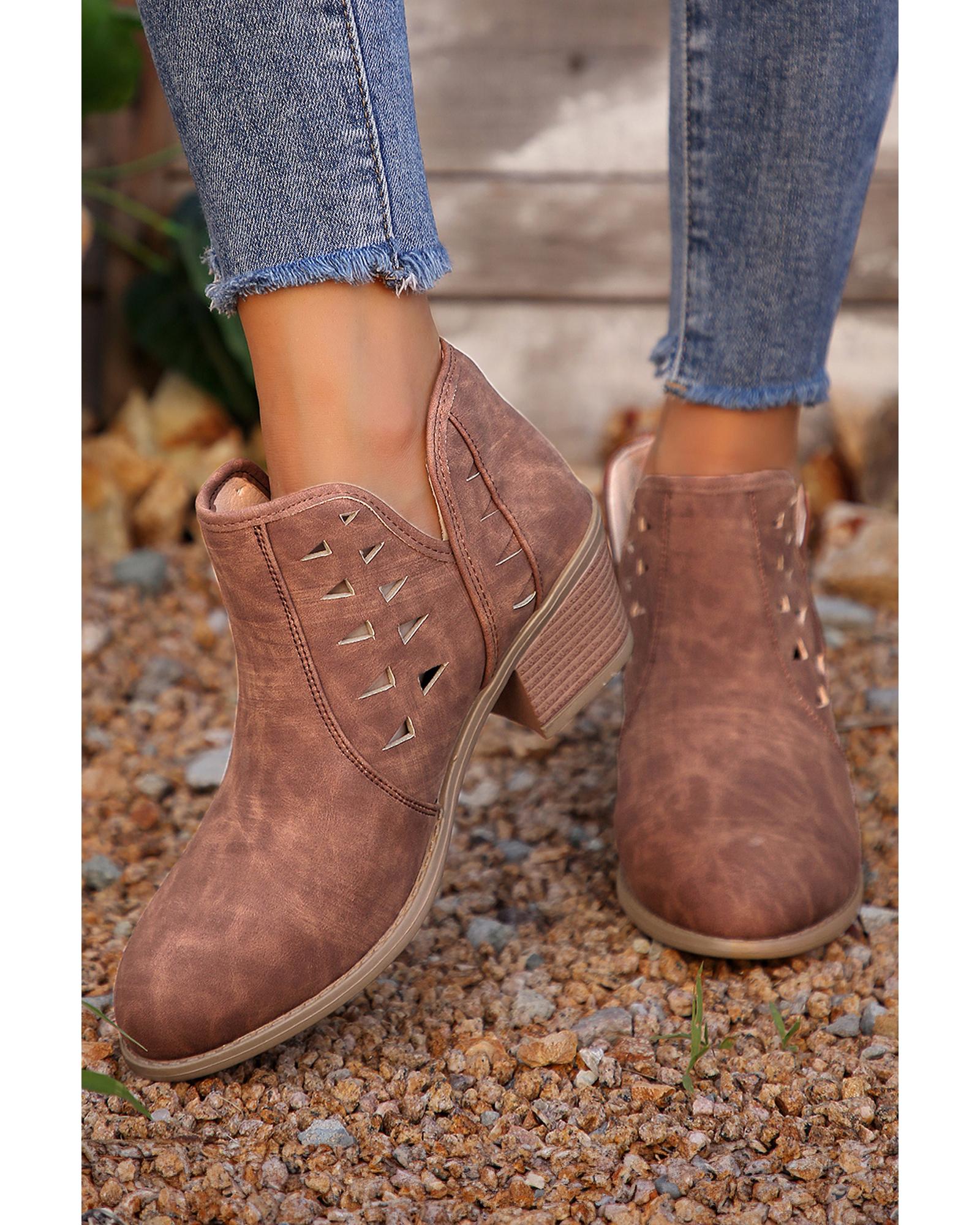 Red Sandalwood Cut Out Suede Pointed Toe Heeled Ankle Boots – 37 EU