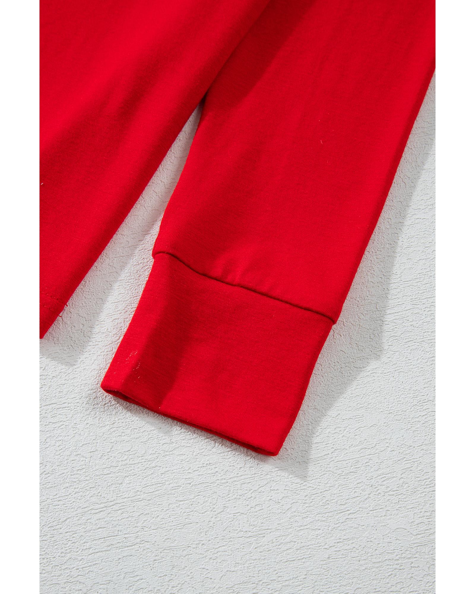 Red Solid Top and Christmas Pants Two Piece Lounge Set – L