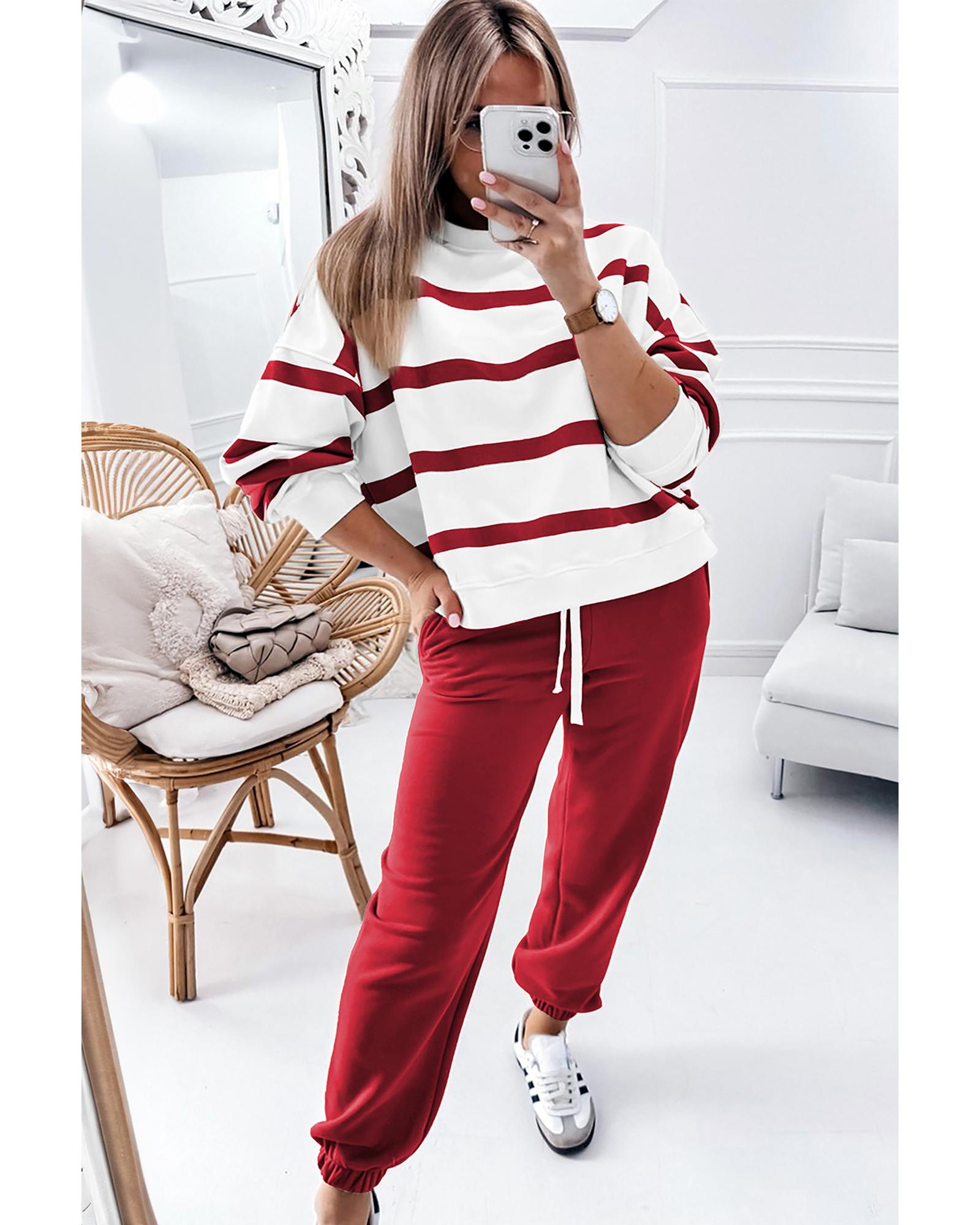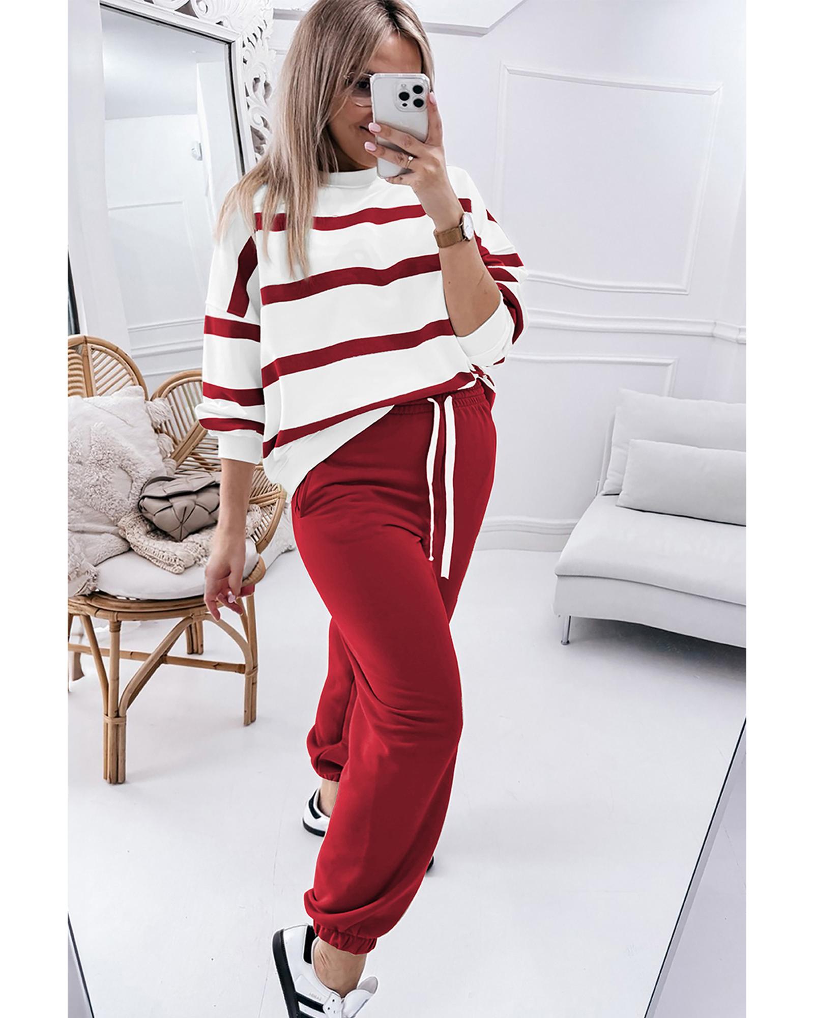 Red Stripe Drop Shoulder Pullover and Jogger Pants Set – 2XL