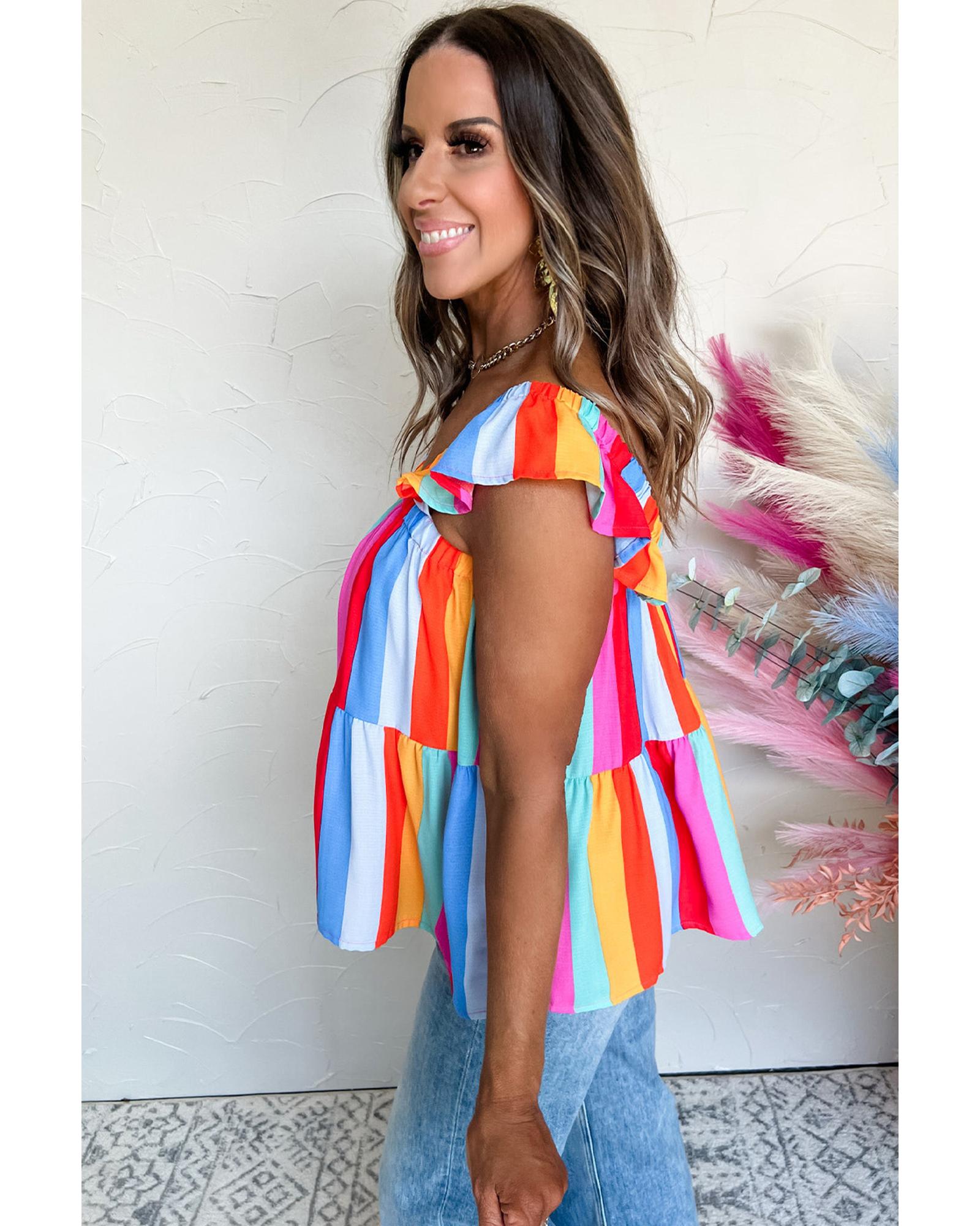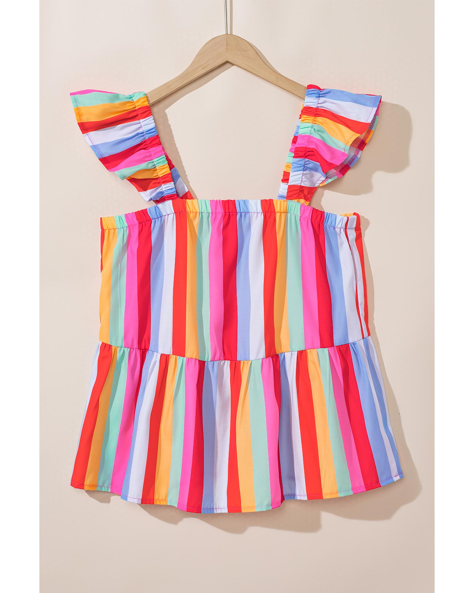 Red Stripe Ruffled Straps Babydoll Tank Top – XL