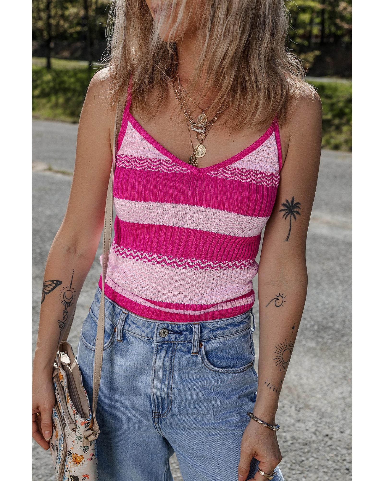 Red Stripe Spaghetti Strap V Neck Sweater Vest – M