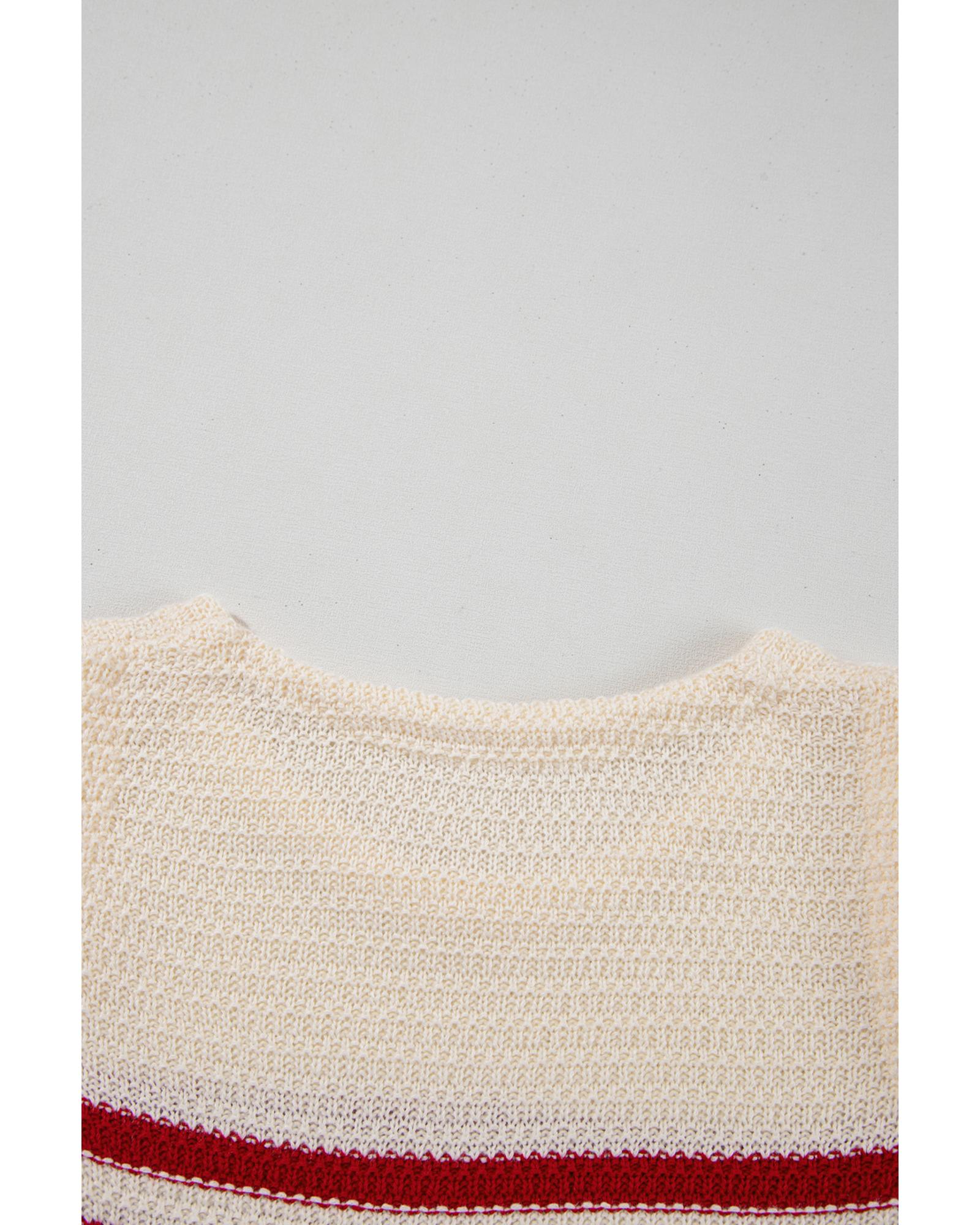 - Red Stripe Textured Knit Ribbed Hem Sweater Tank Top