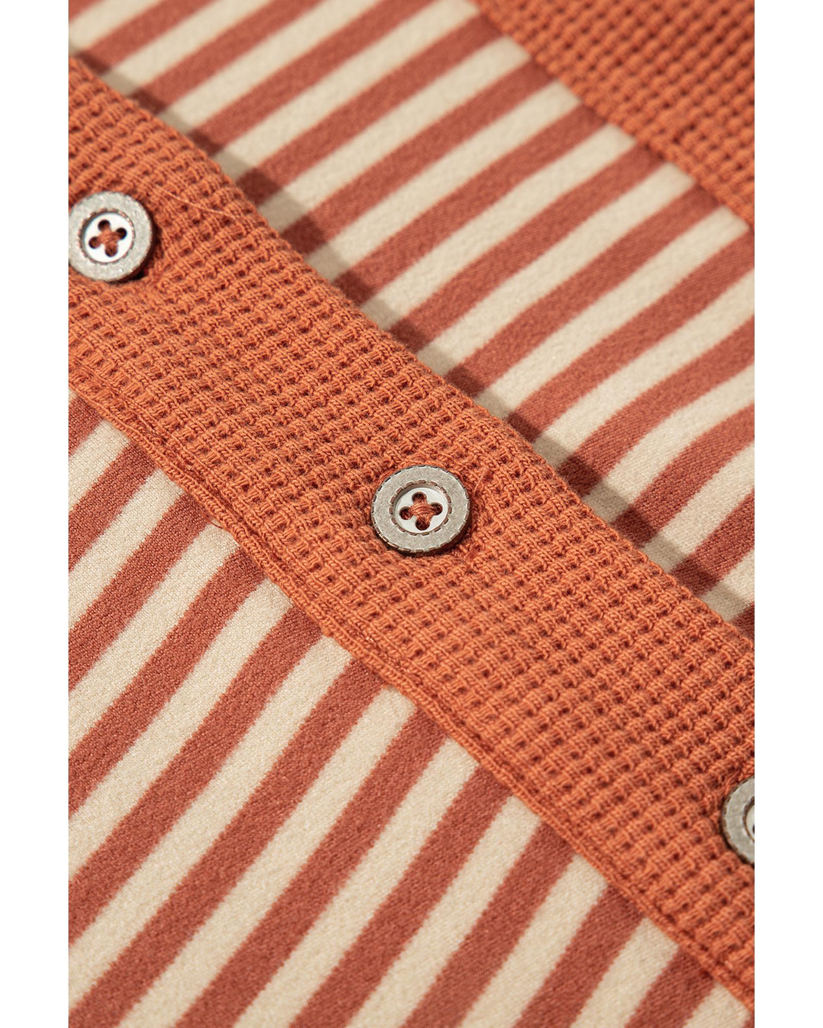 Red Stripe Textured Patched Drop Shoulder Buttoned Plus Size Sweatshirt – 3X