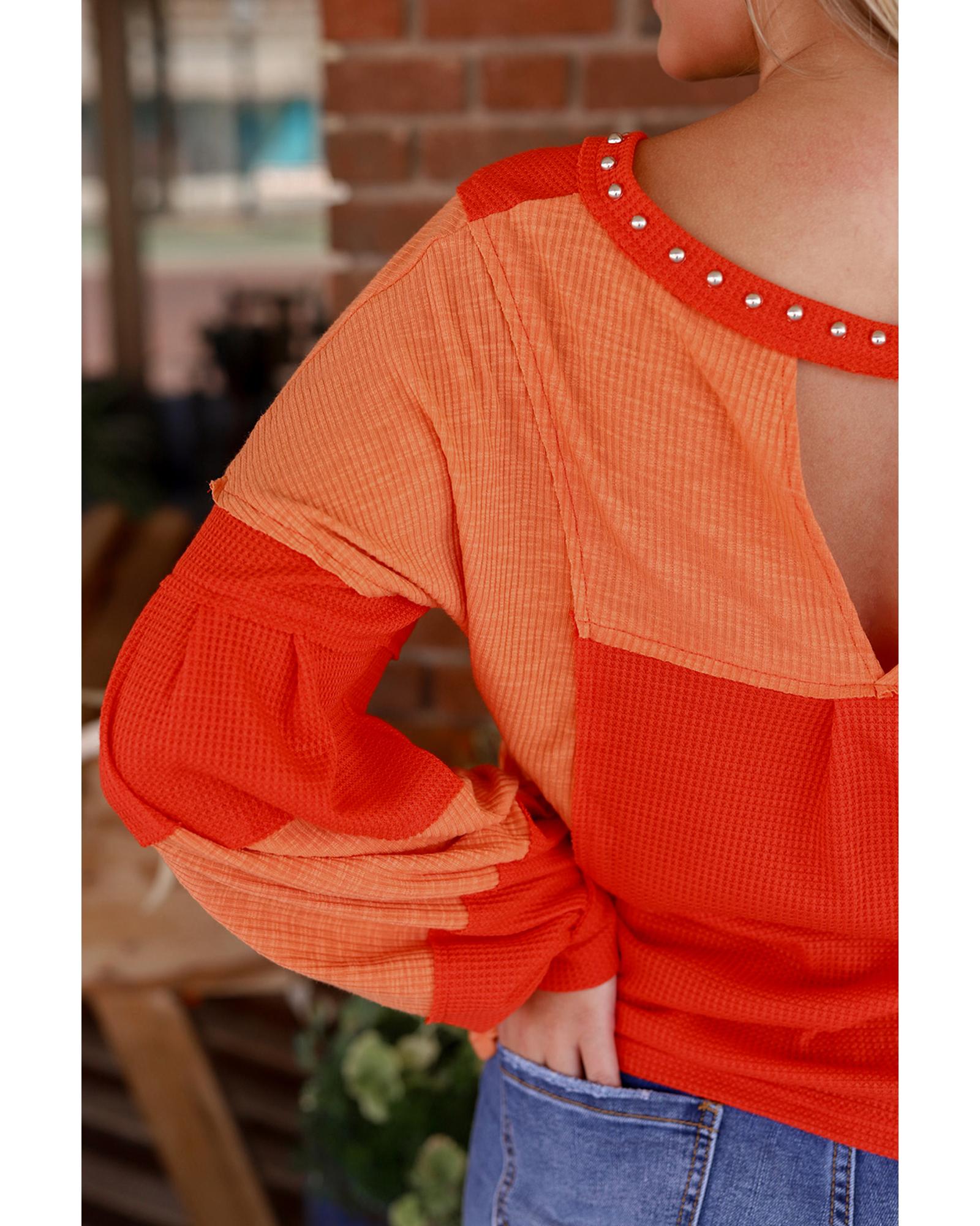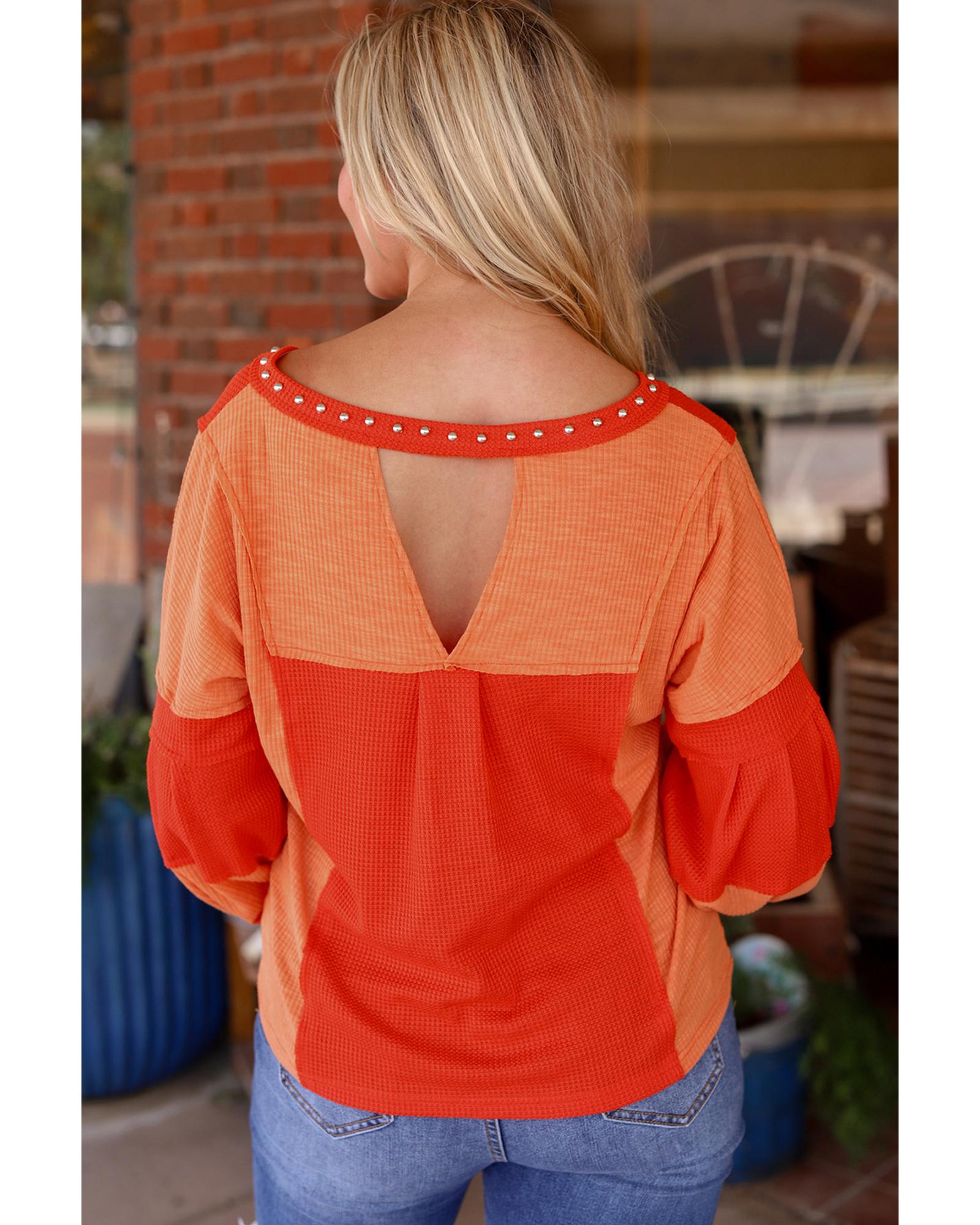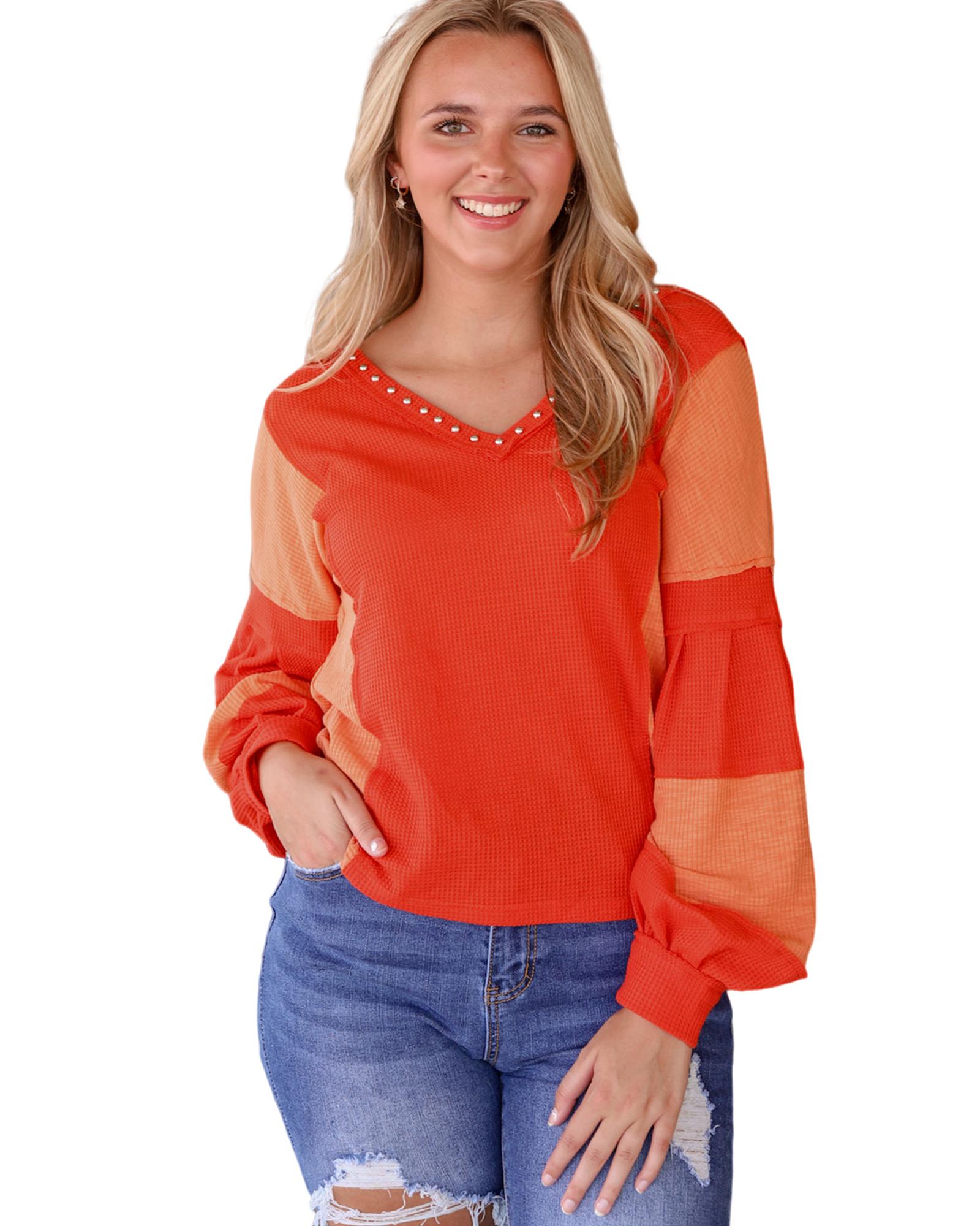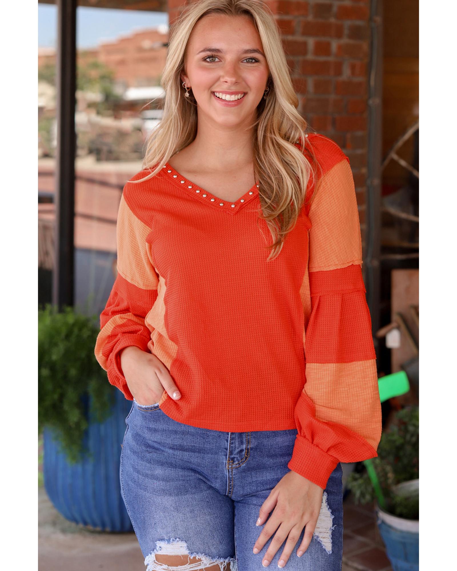 Red Studded V Neckline Exposed Seam Textured Knit Top – XL