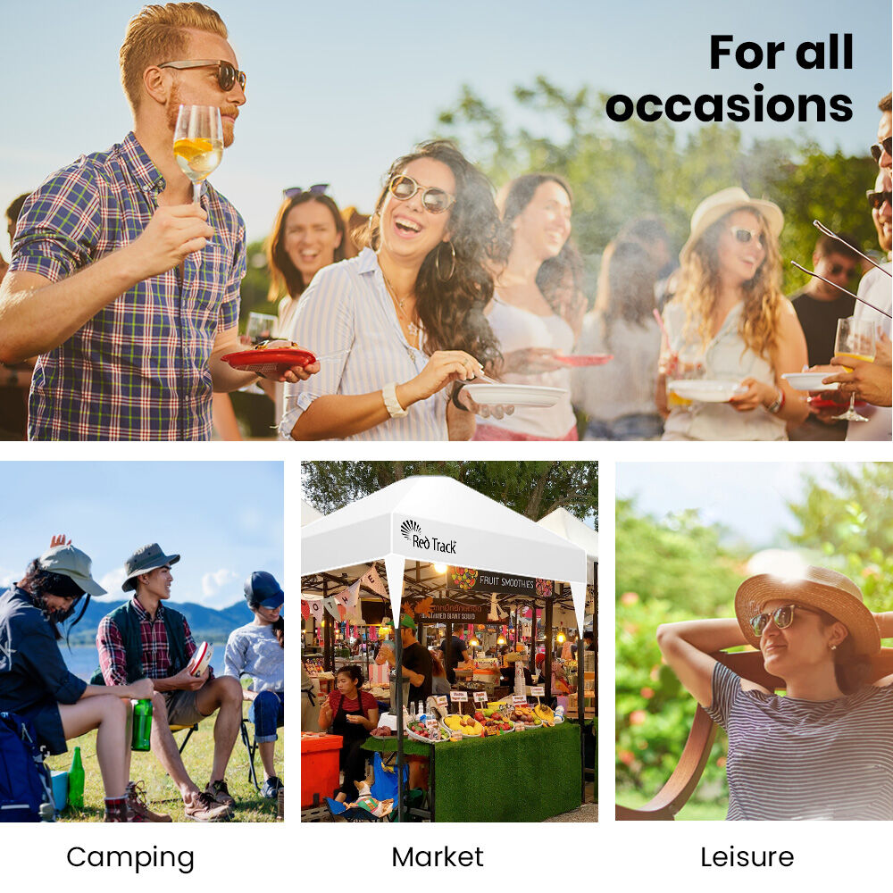 The Red Track 2.2×3.6m Gazebo (with 3 walls included) stands out with the smallest folded size on the market—just 93cm long! This ultra-compact 13kg design makes it incredibly easy for one person to carry, transport, and store, offering unmatched convenience compared to bulkier alternatives. Whether you’re short on space or always on the move, this gazebo’s design ensures portability without compromise.