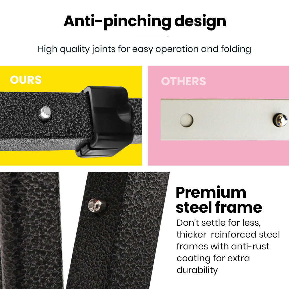 • Durable steel frame with nylon joints for stability