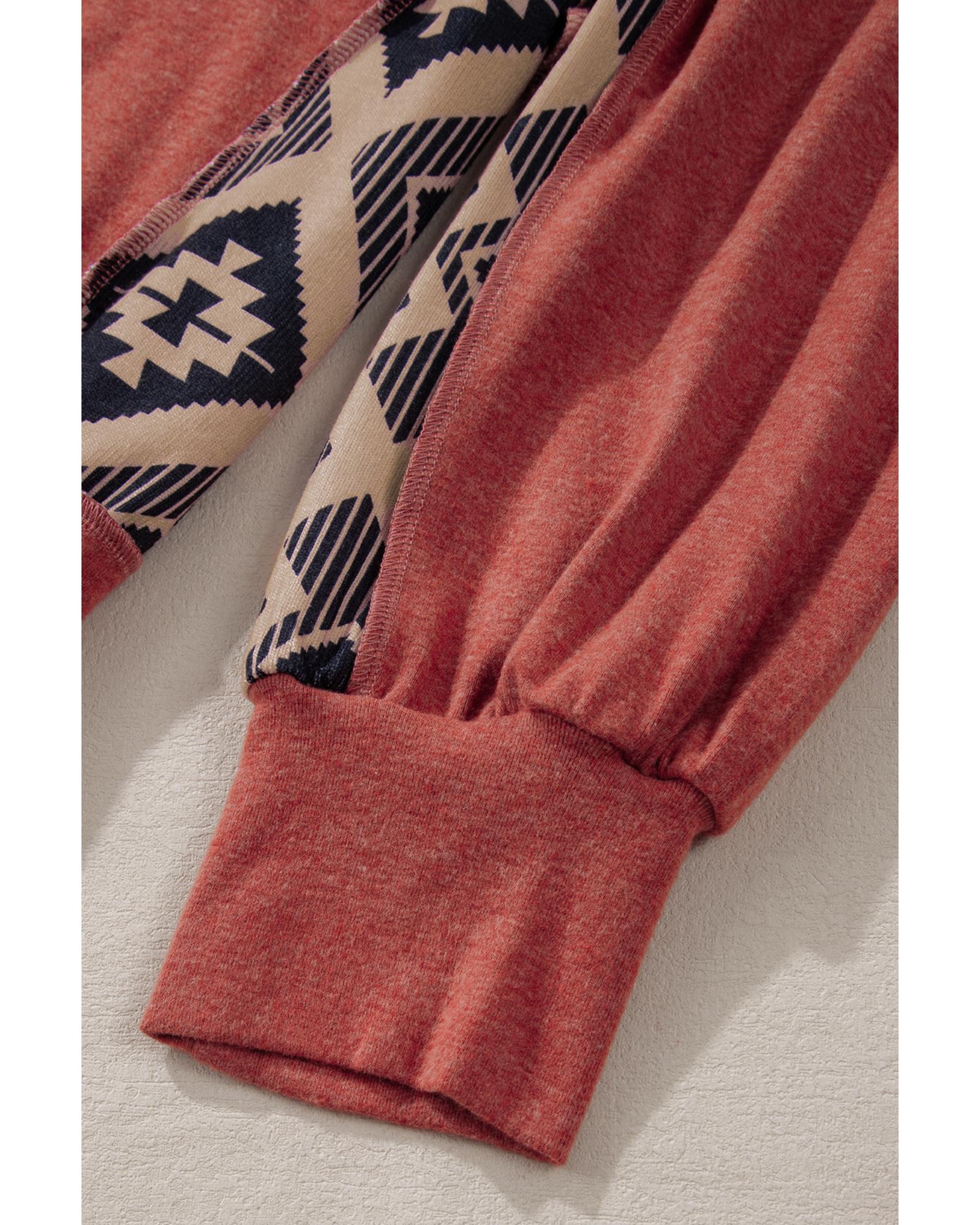 Redwood Burl Aztec Patchwork Drop Shoulder Plus Size High Low Sweatshirt – 1X