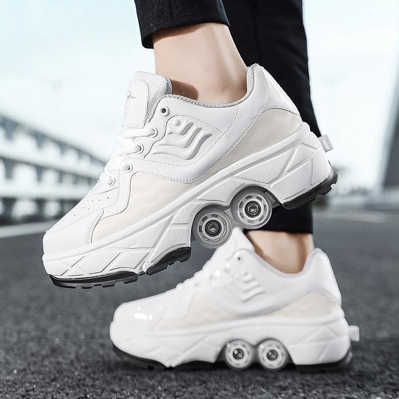 Retractable Dual-purpose Roller Skates – Size 33 Deformable Four-wheel – Df09 White – 33