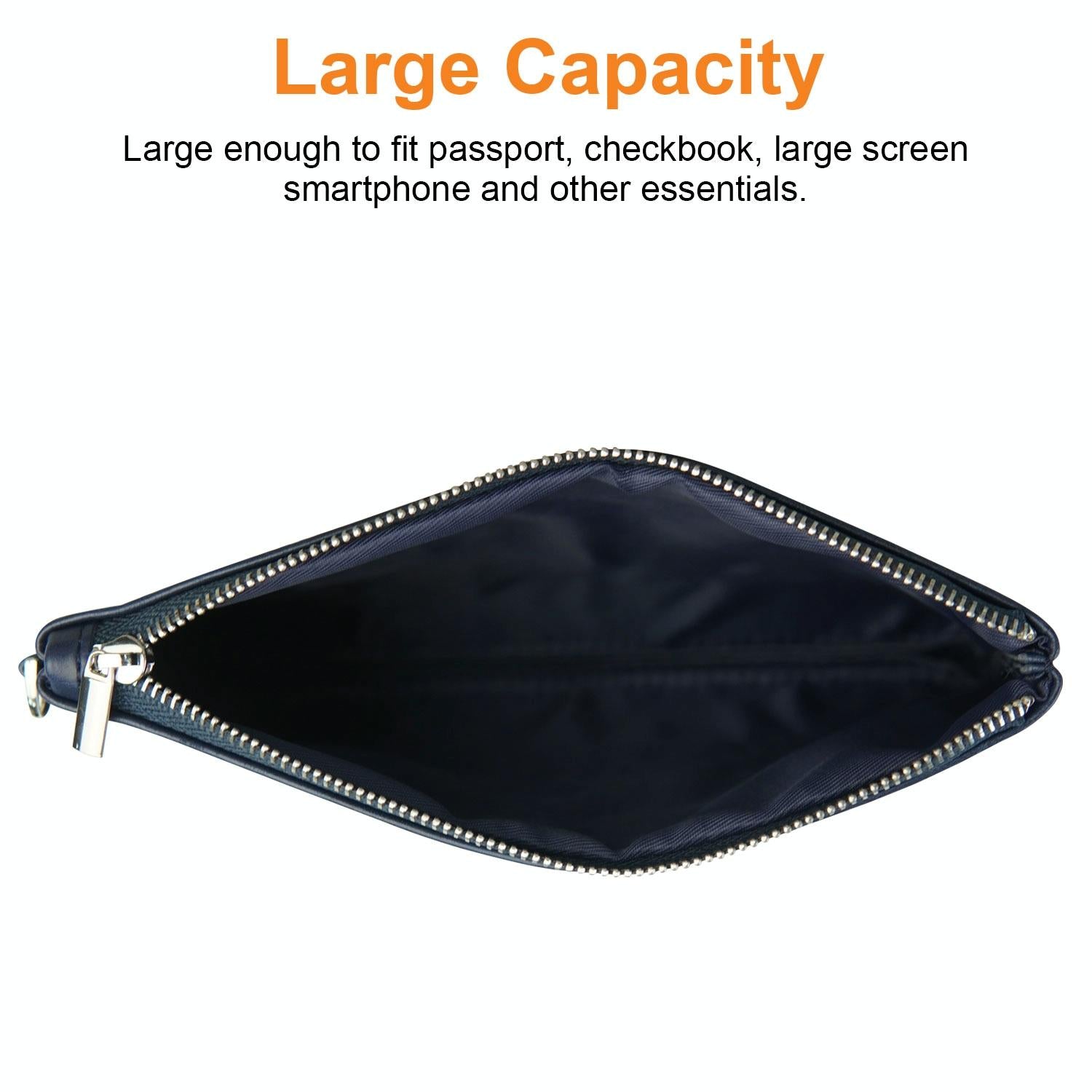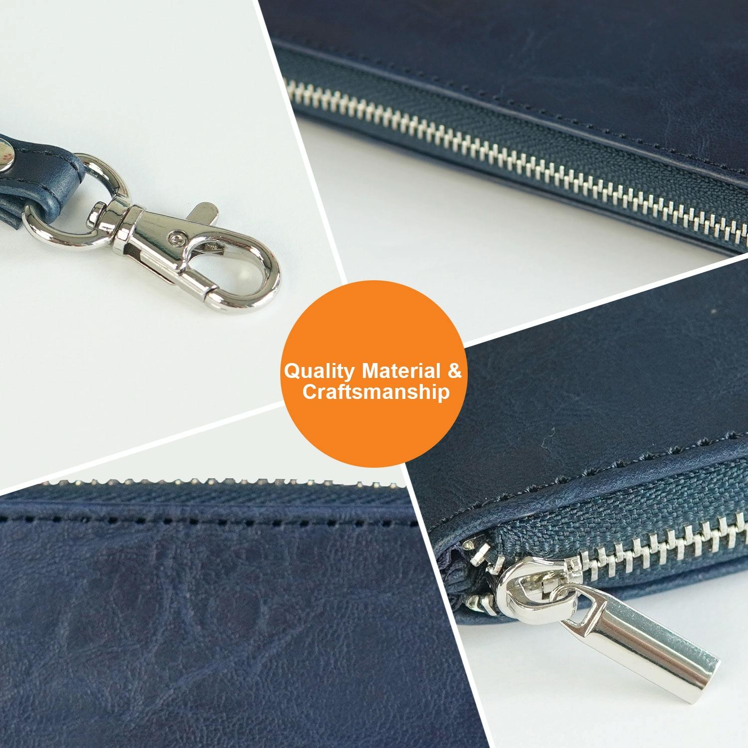 Retro Leather Clutch Bag with Zipper – 6 Inch – Dark Blue
