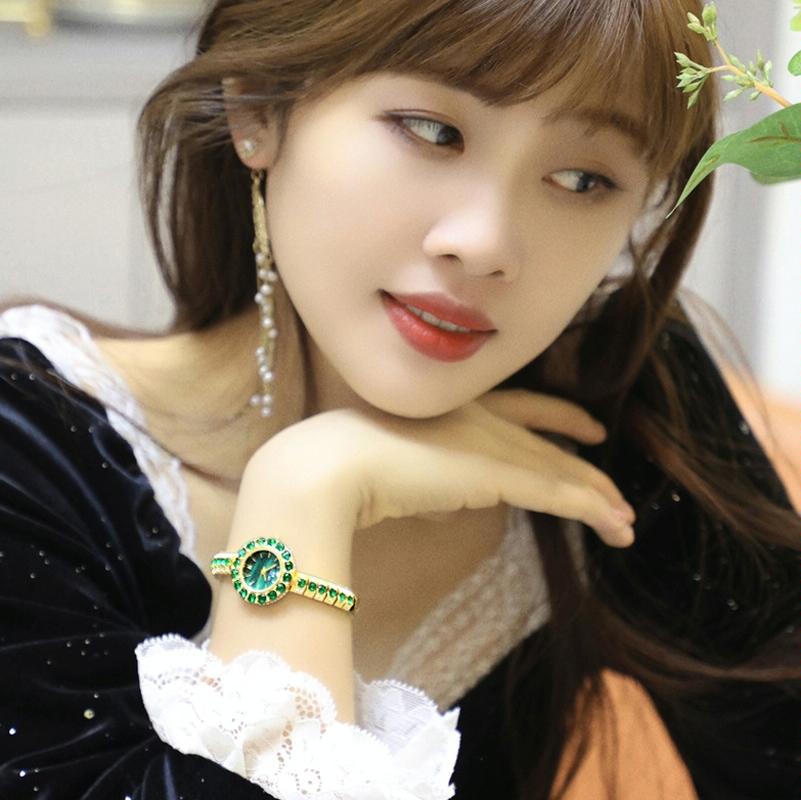 • 1 x Fa1698 Women Simple Temperament Retro Malachite Texture Small Green Watch