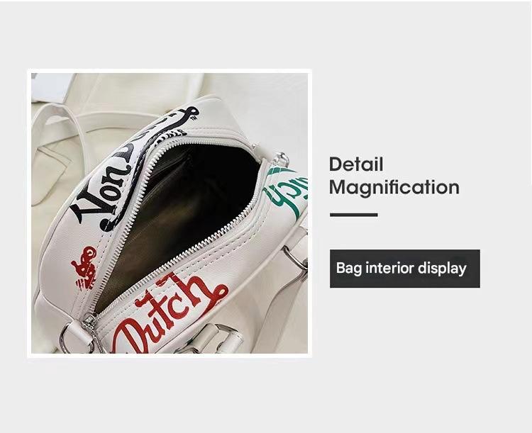 Make a bold statement with this stylish Dome Satchel Bag. Crafted from durable PU leather, this handbag features a vibrant retro-inspired print showcasing iconic logo and motorcycle graphics. Its classic dome shape offers a surprisingly spacious interior for your essentials. The bag is designed for versatility, with comfortable top handles (approx. 10cm drop) for carrying as a handbag and a detachable, adjustable shoulder strap for wearing as a crossbody or shoulder bag. Detailed with smooth metal zippers, sturdy metal hardware including detachable hooks for the shoulder strap, and protective metal rivets on the base to prevent wear. This original design classic is perfect for adding a touch of vintage flair to any outfit. Available in multiple attractive background shades.