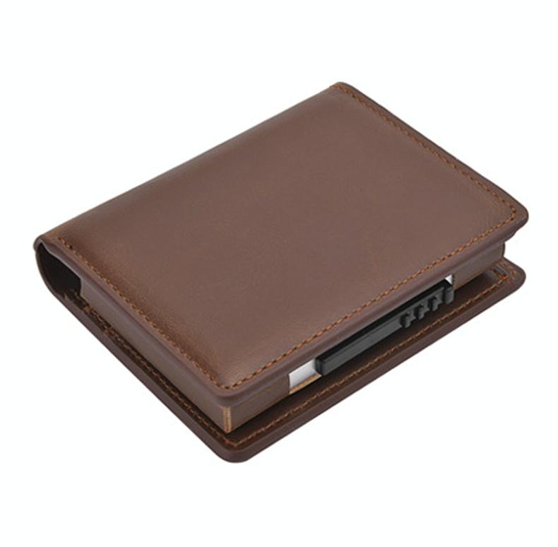 Rfid Blocking Short Wallet with Automatic Pop Up – Dark Brown