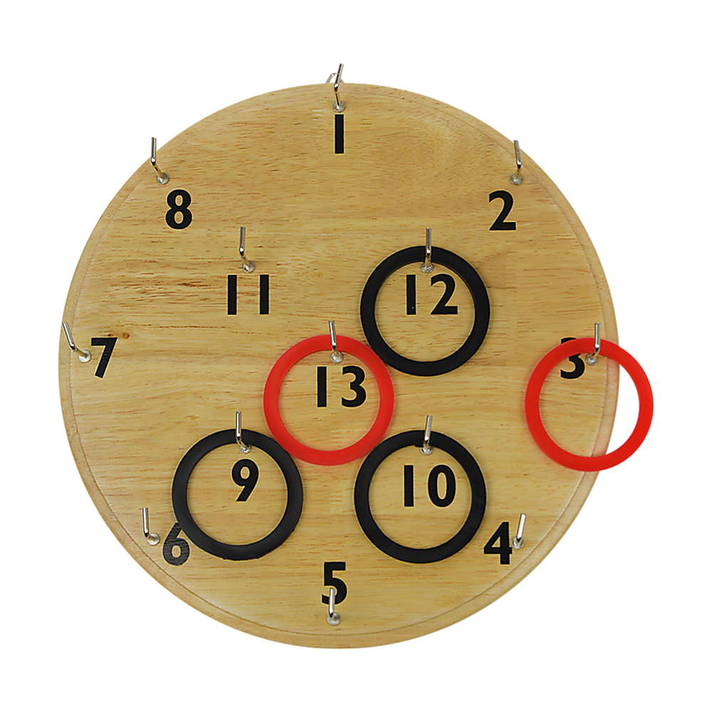Crafted from top-quality timber, metal, and plastic, this game set is ready to go whenever you are. It's easy to install just hang it up, and you're ready to play. It makes a perfect gift for the holidays or a birthday. Or, buy it for a child who learns best through activity. She'll learn her maths skills quickly once she starts adding up her score. Don't miss out on a moment of family fun. Order your ring toss game today!
