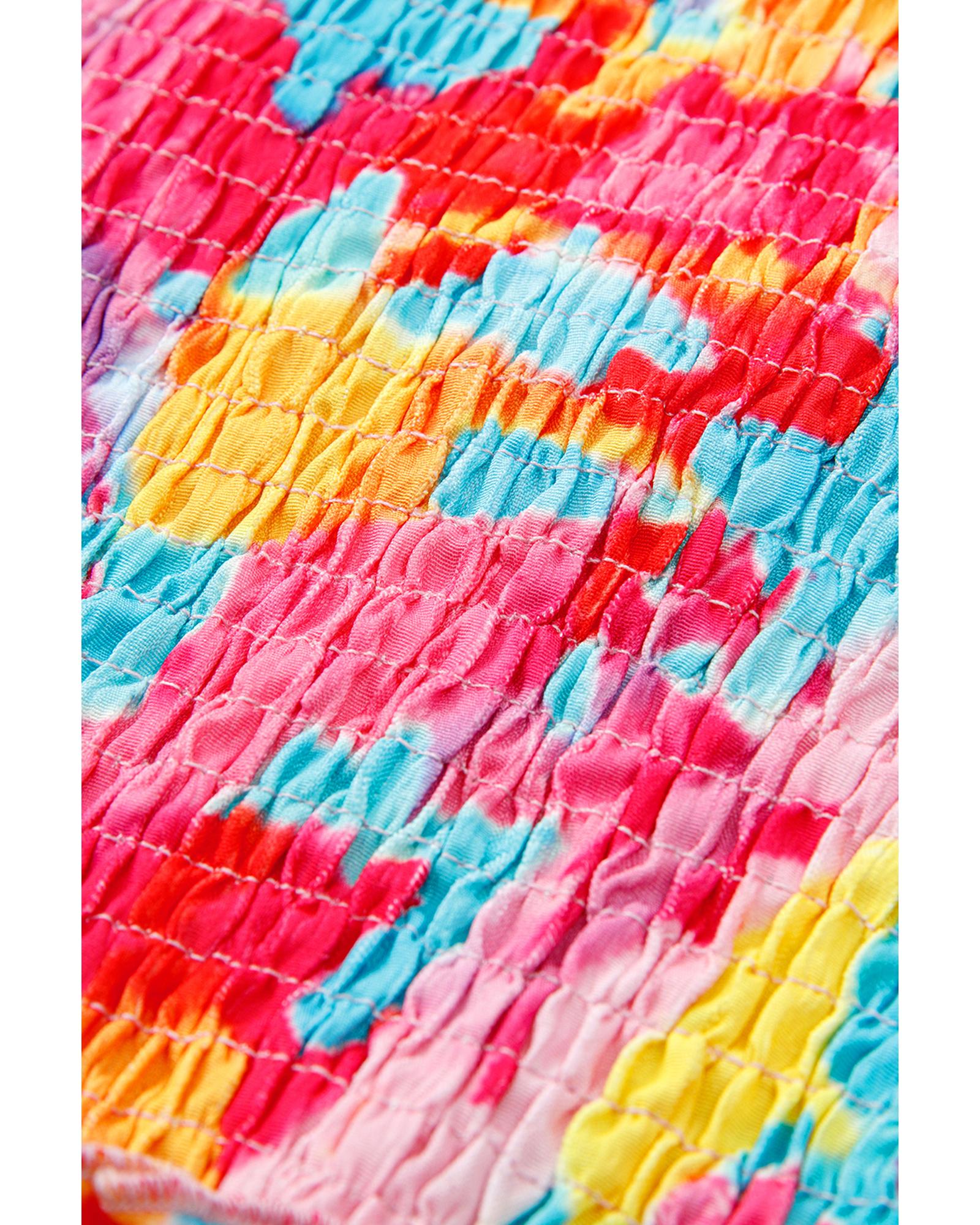 Rose Abstract Printed Puff Sleeve Square Neck Smocked Bust Tied Back Plus Size Dress – 1X