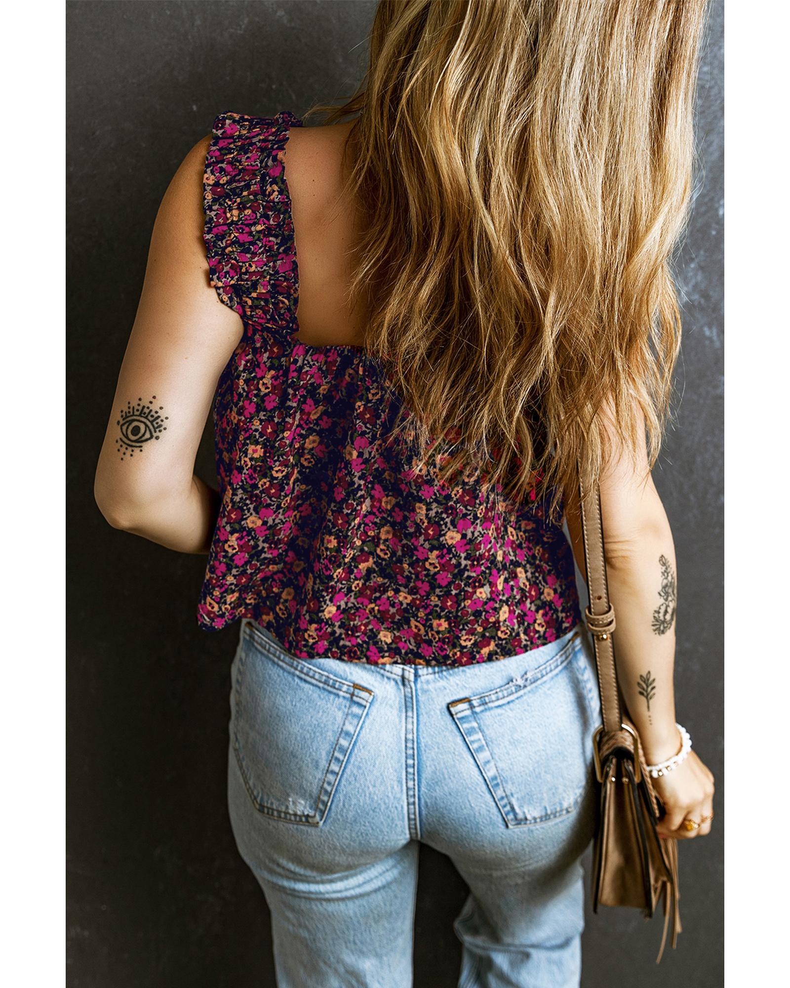 Rose Boho Frilled Straps Floral Tank Top – XL