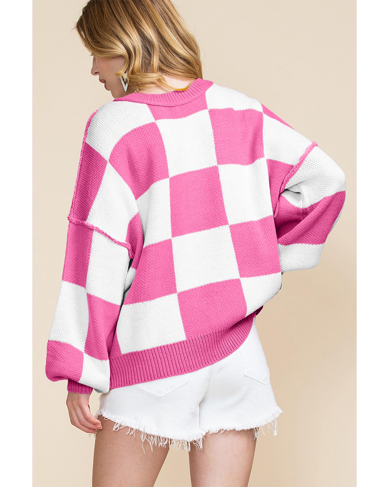 Rose Checkered Bishop Sleeve Sweater – L