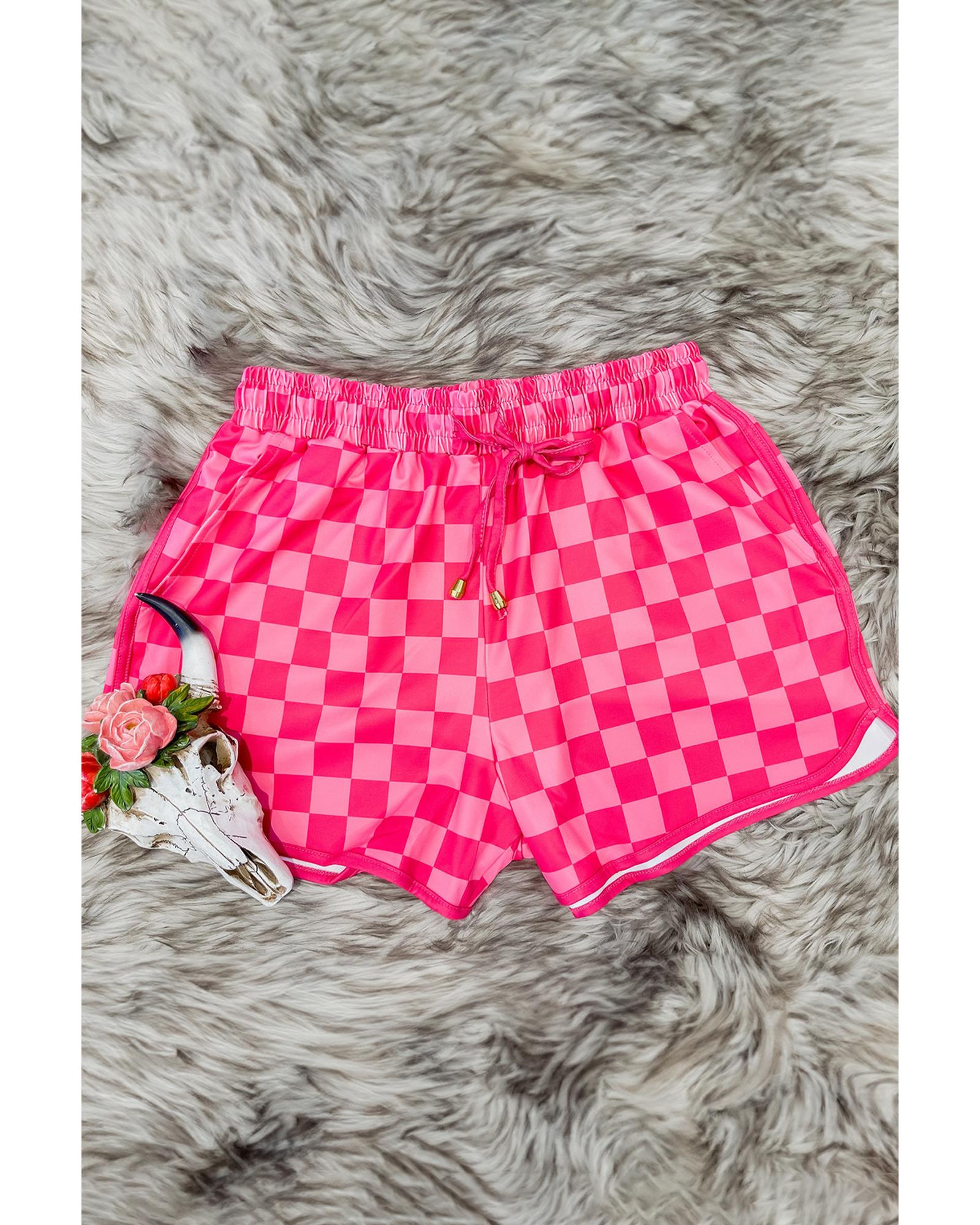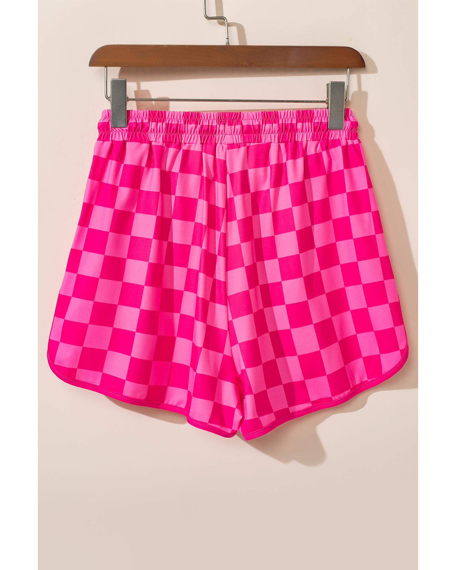 Rose Checkered Drawstring Elastic Waist Casual Shorts – L