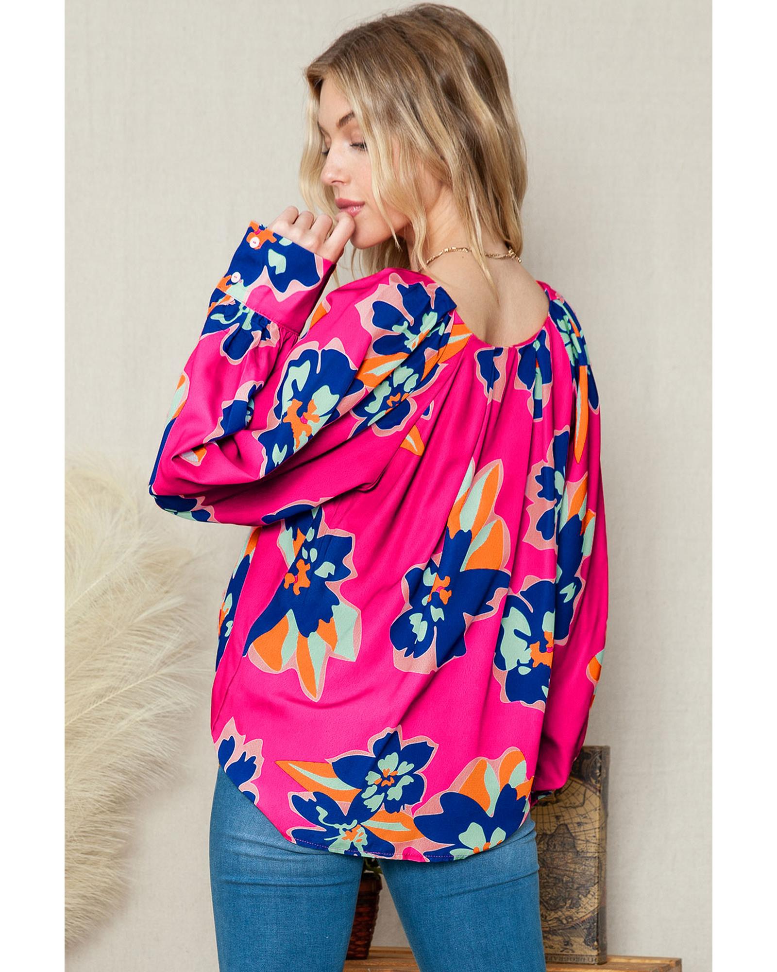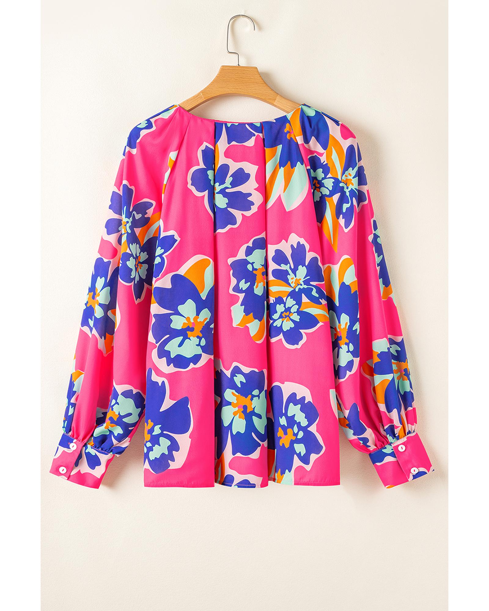Rose Floral Pattern V Neck Balloon Sleeve Plus Size Blouse – 4X