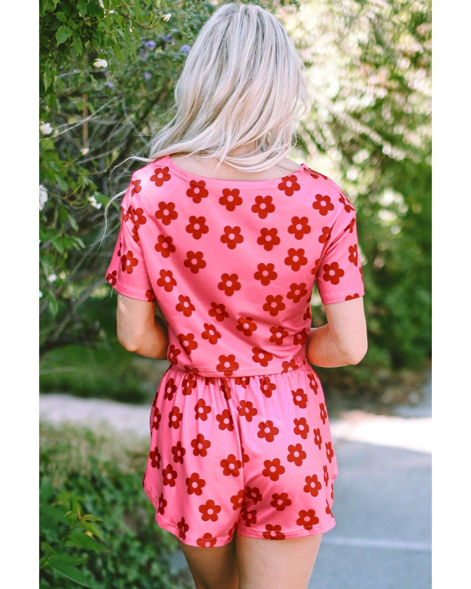 Rose Floral Print Crop Tee and Shorts Lounge Set – S