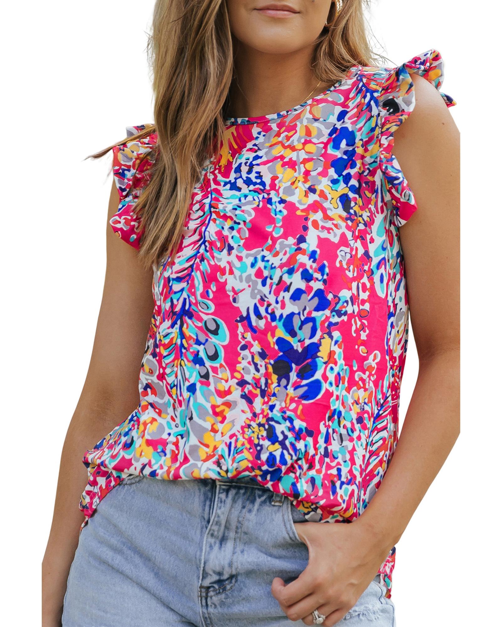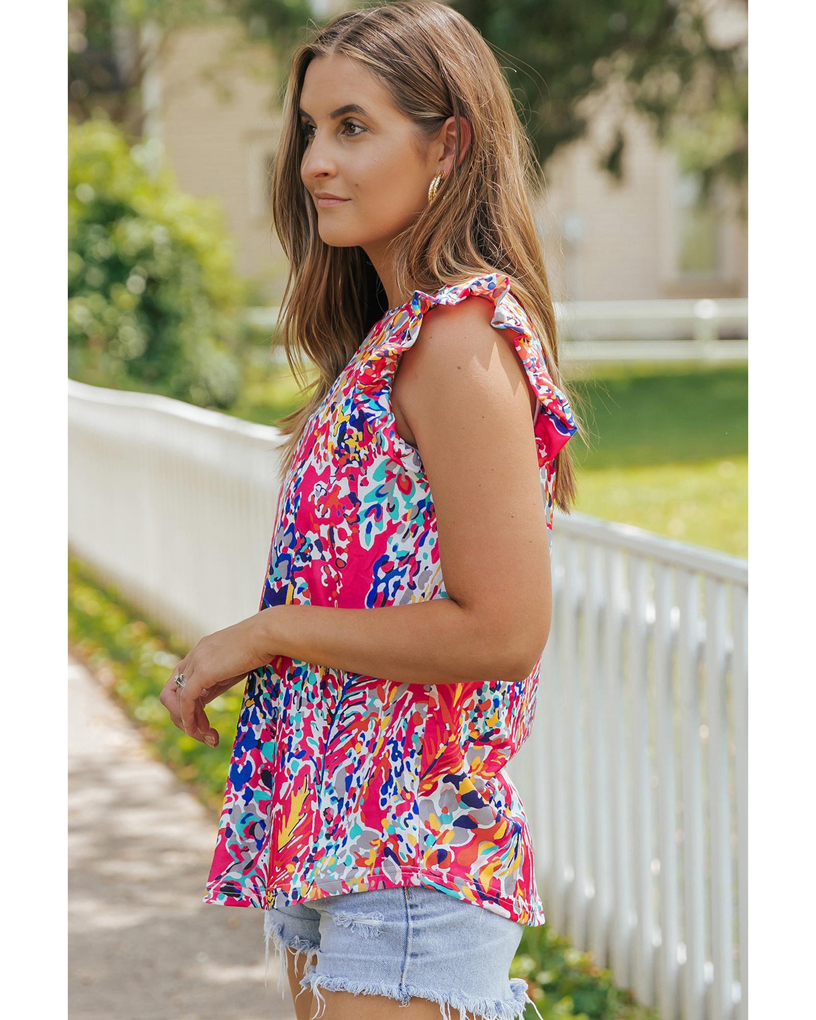 - Gorgeous tank top featuring a blooming floral print and flattering ruffle sleeves