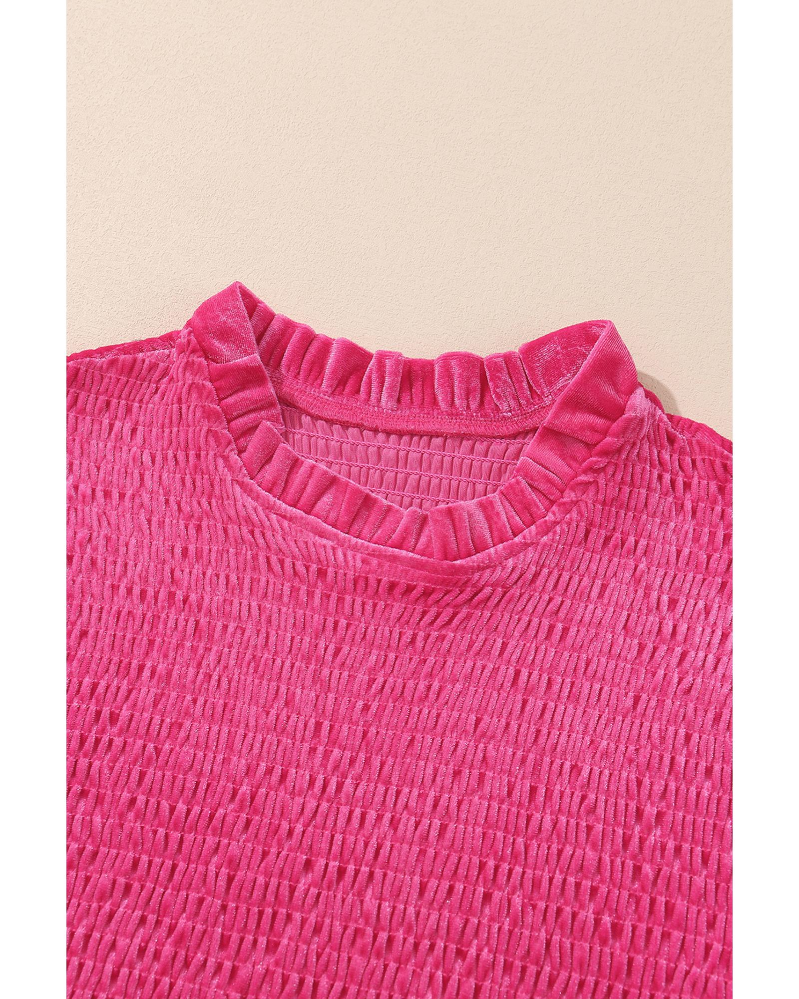 Rose Frilled Neck Smocked Bodice Velvet Dress – L