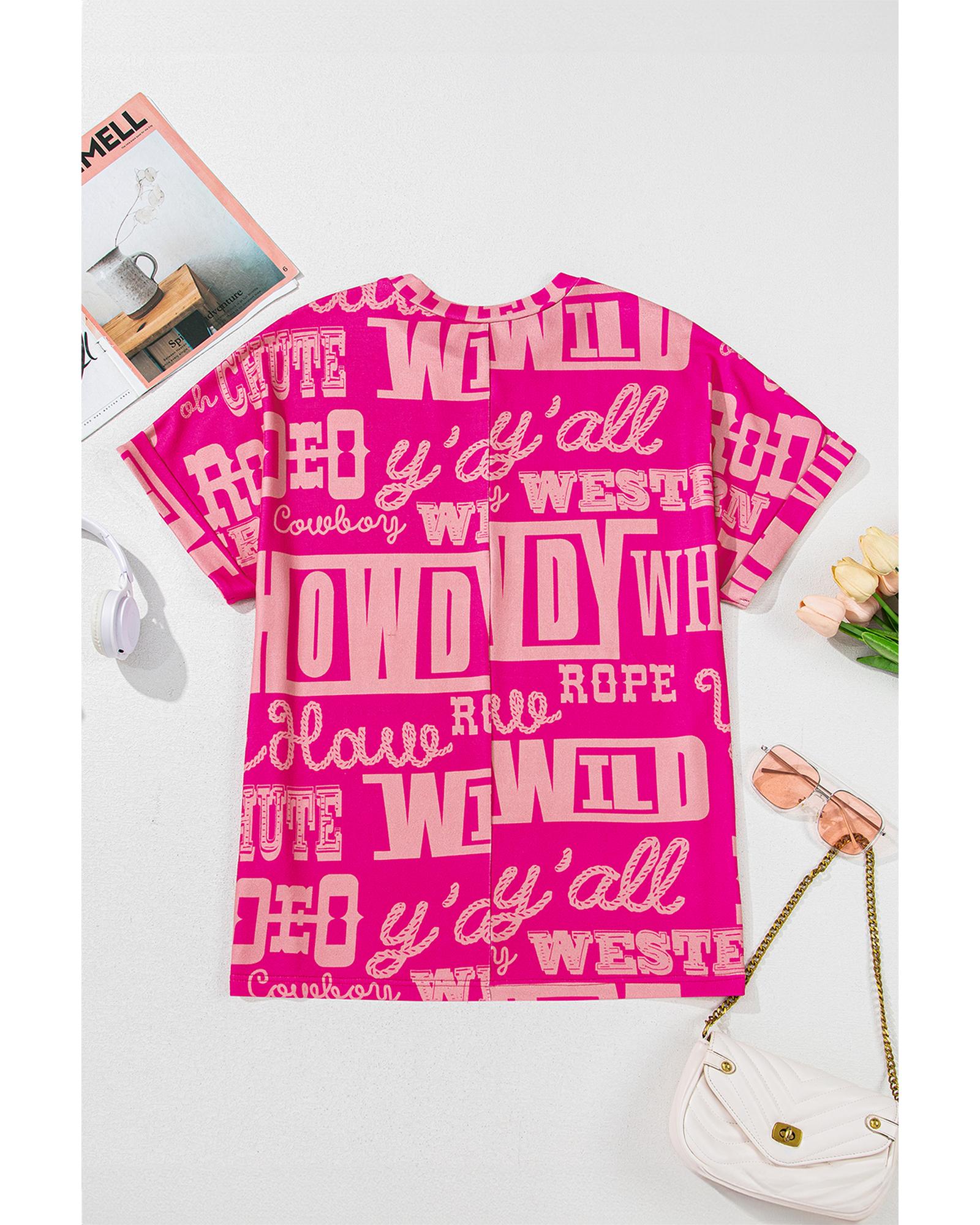 Rose Howdy Cowboy Letter Printed Western Fashion Tee – M