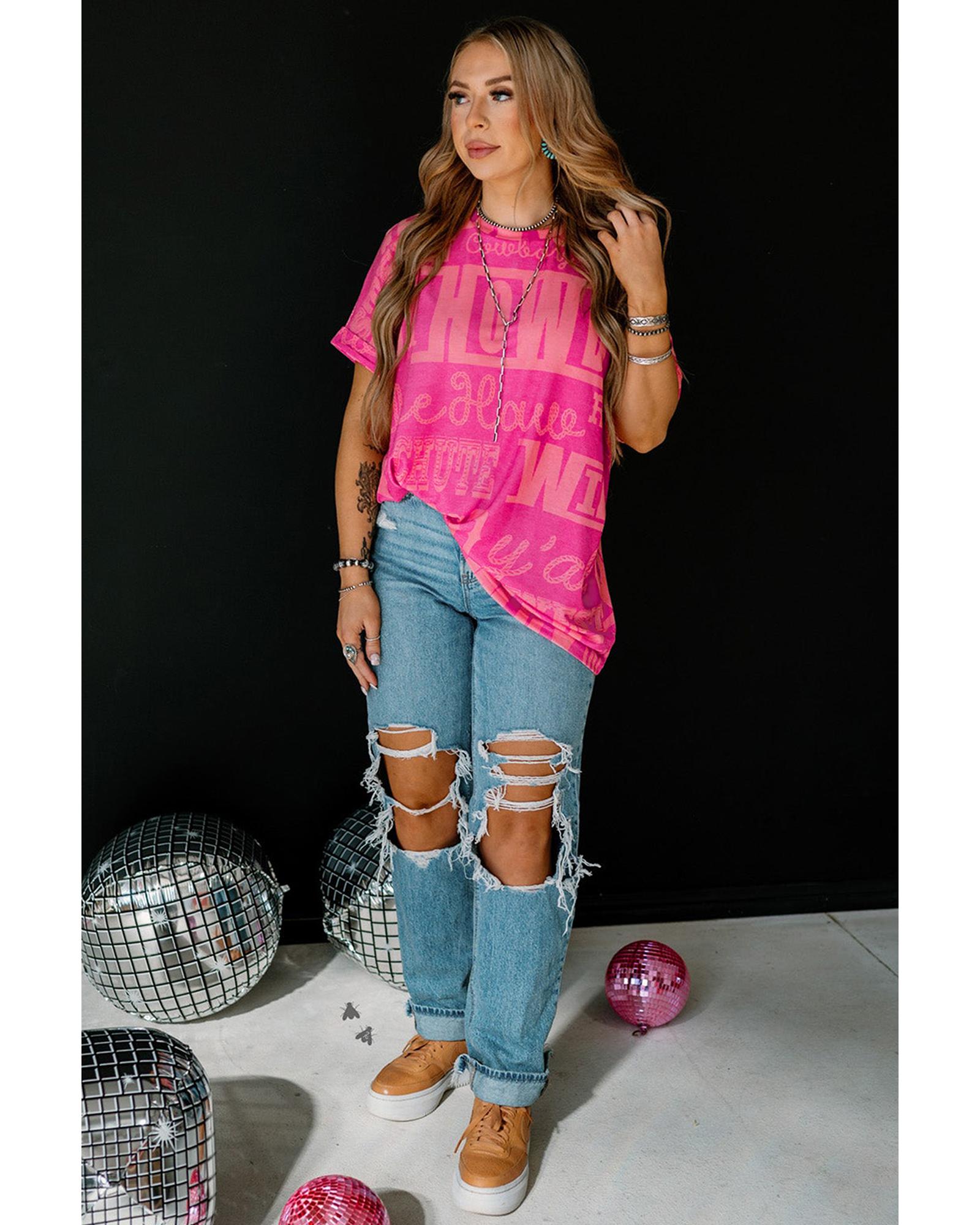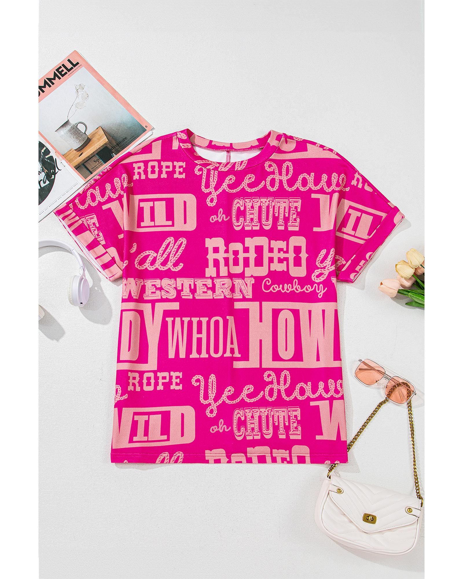 Rose Howdy Cowboy Letter Printed Western Fashion Tee – S