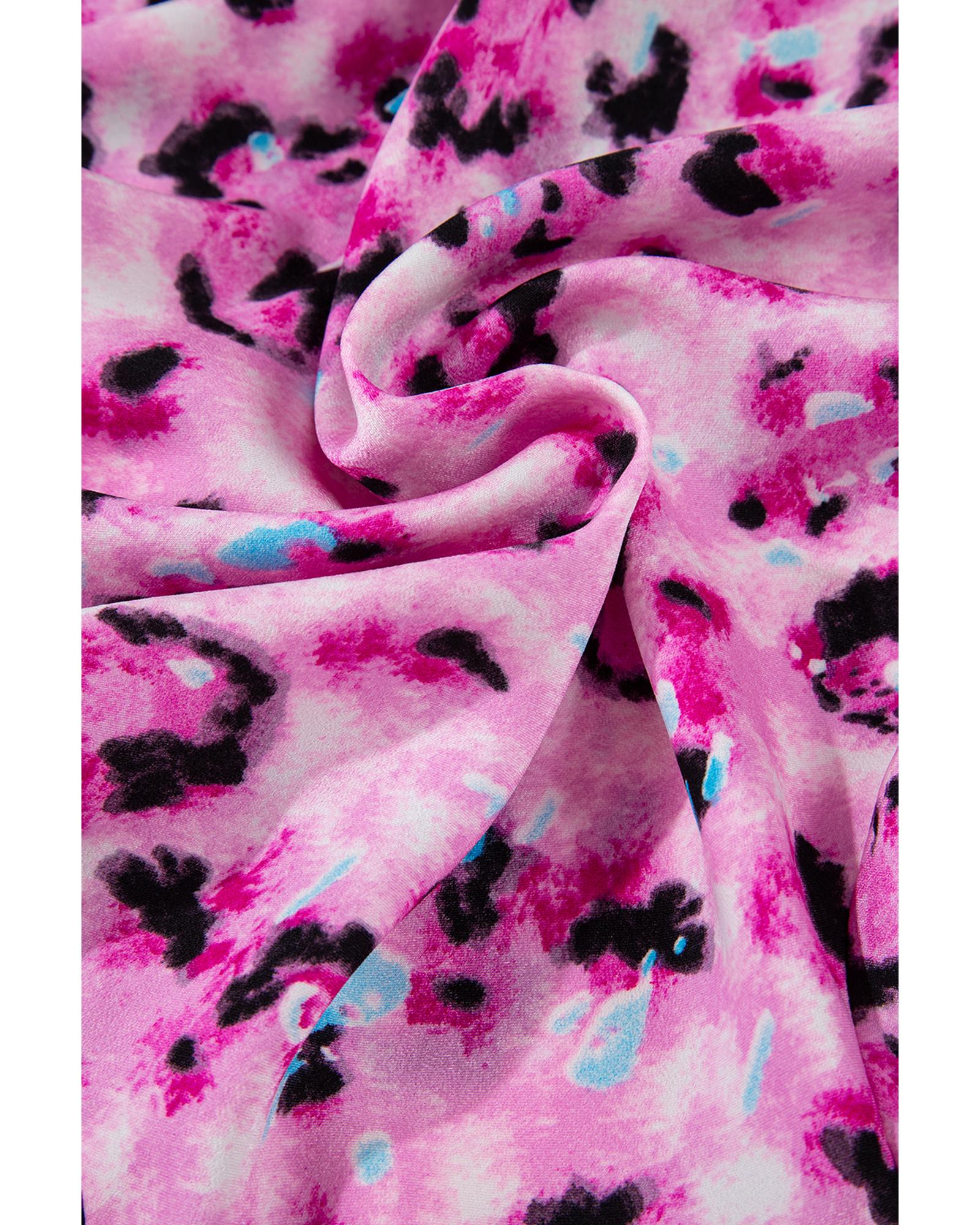 Rose Leopard Print Buttoned Front 3/4 Sleeve Tiered Ruffled Hem Dress – XL