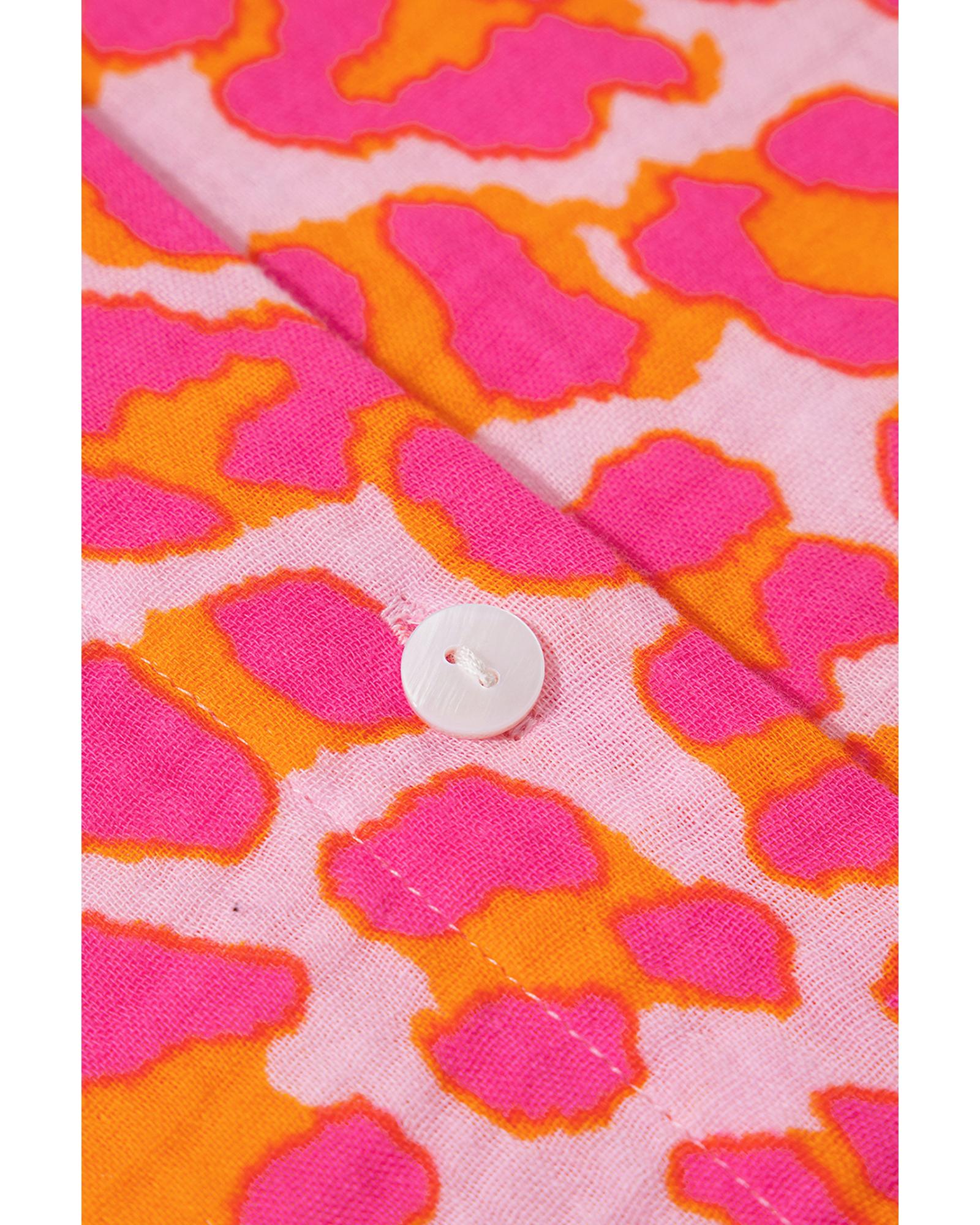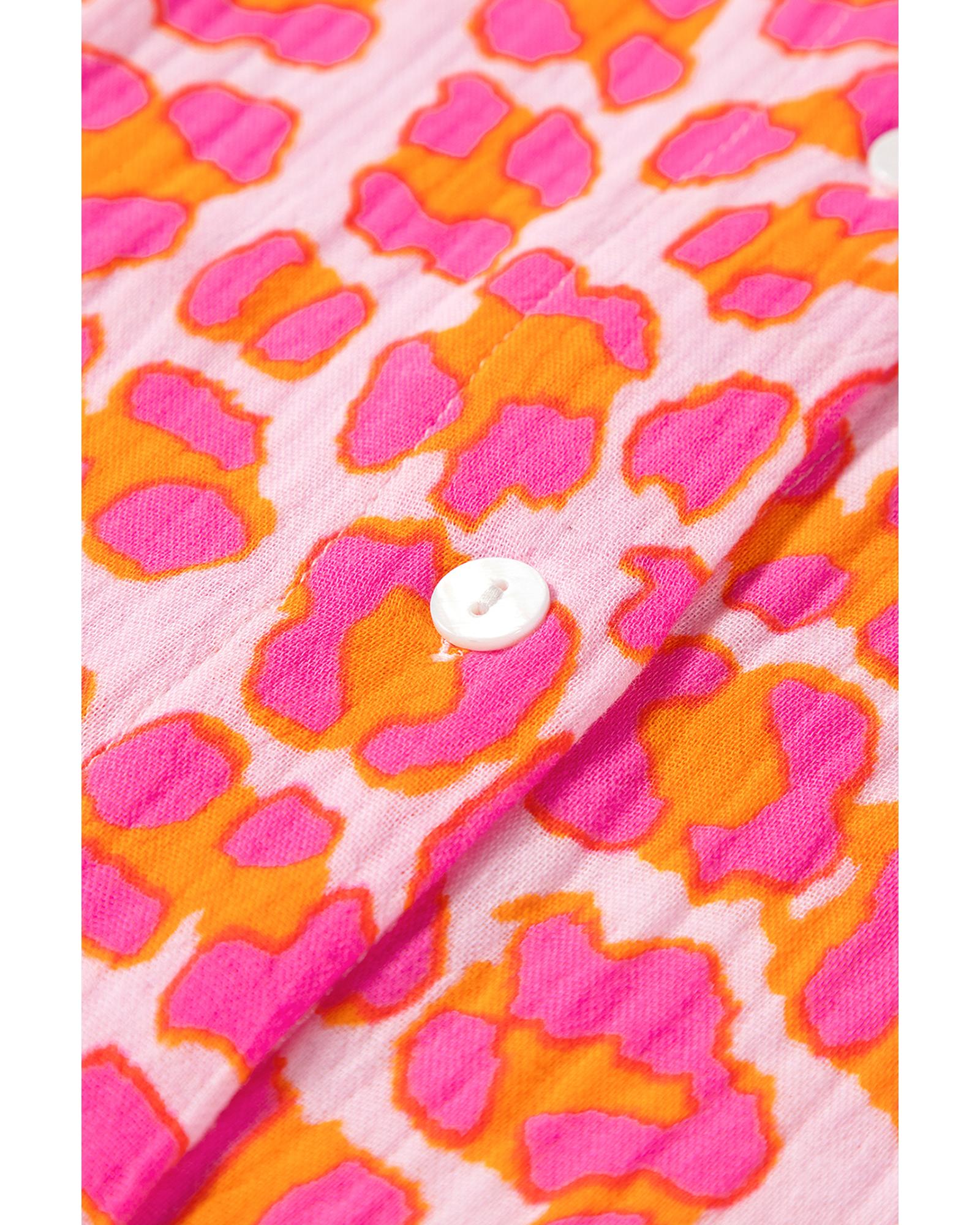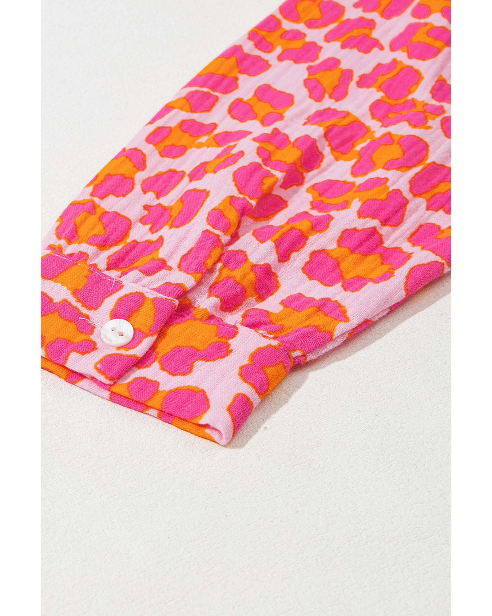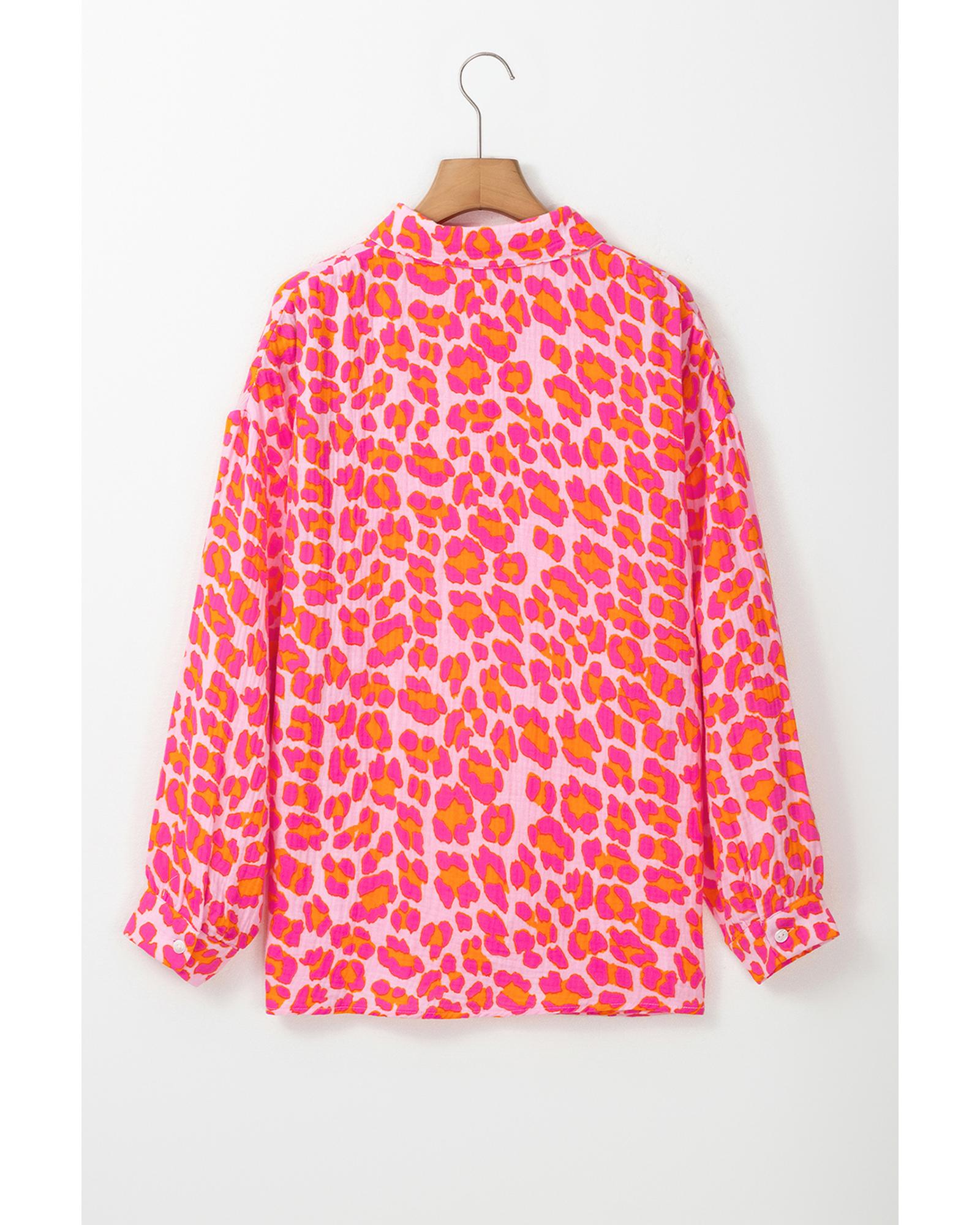 Rose Leopard Printed Button Up Loose Shirt – XL