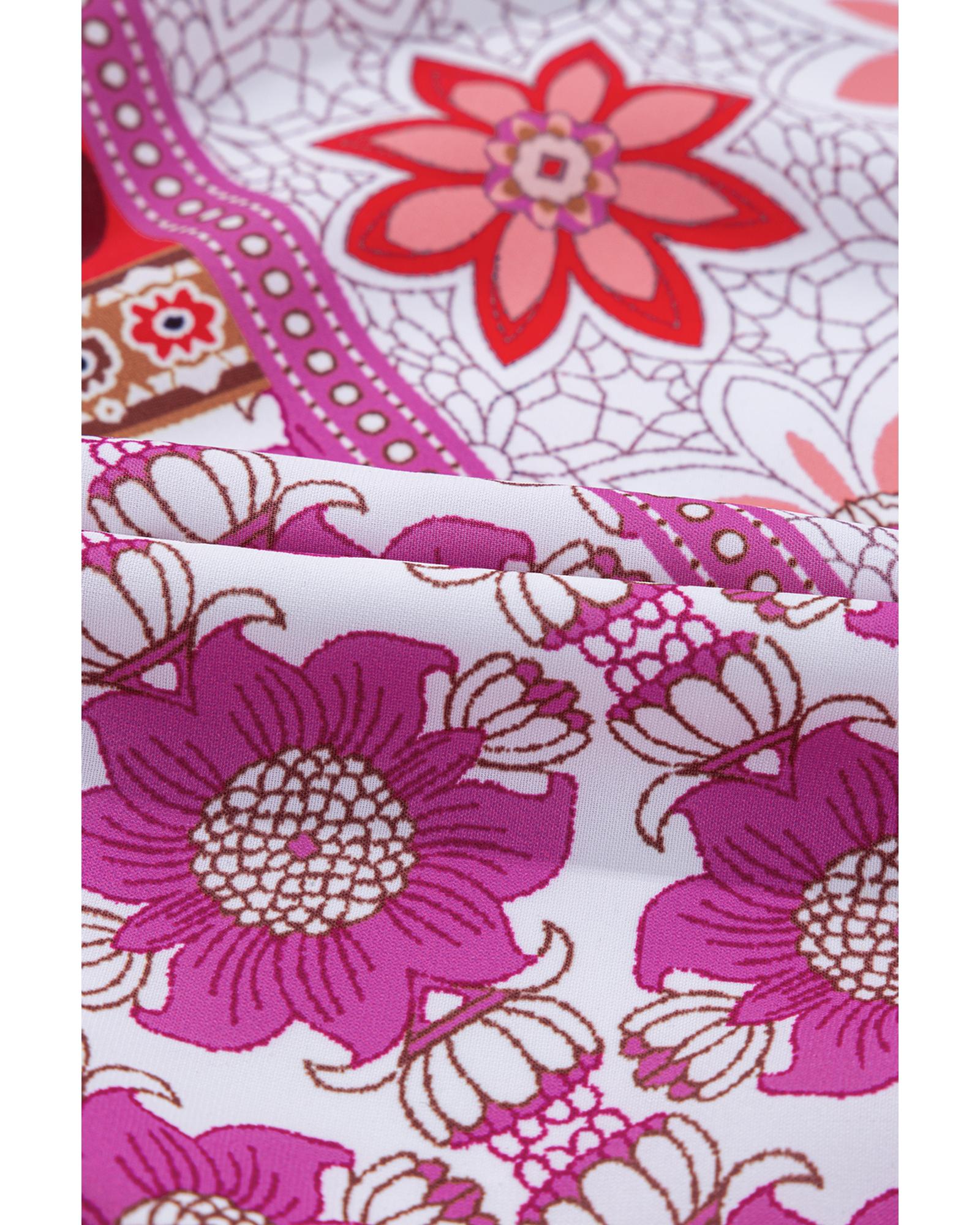 Rose Mixed Floral Long Sleeve V Neck Lace-up Hollowed Back Plus Size Dress – 2X