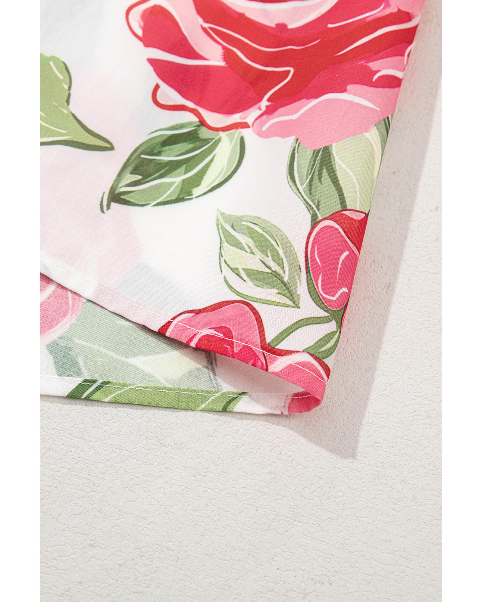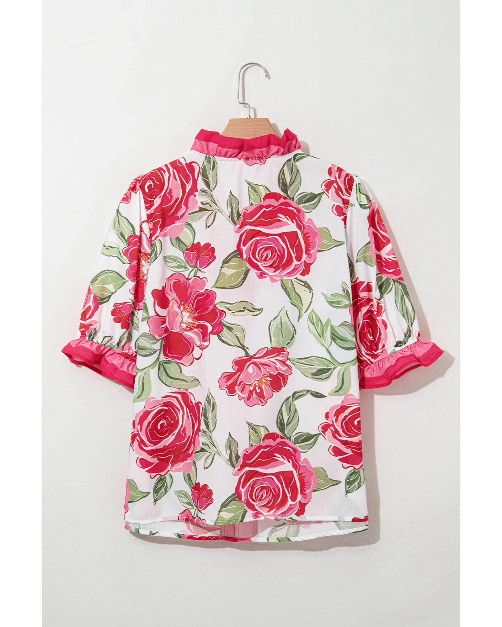 Rose Plus Size Floral Print Frilled Stripes Detail Short Sleeve Blouse – 2X