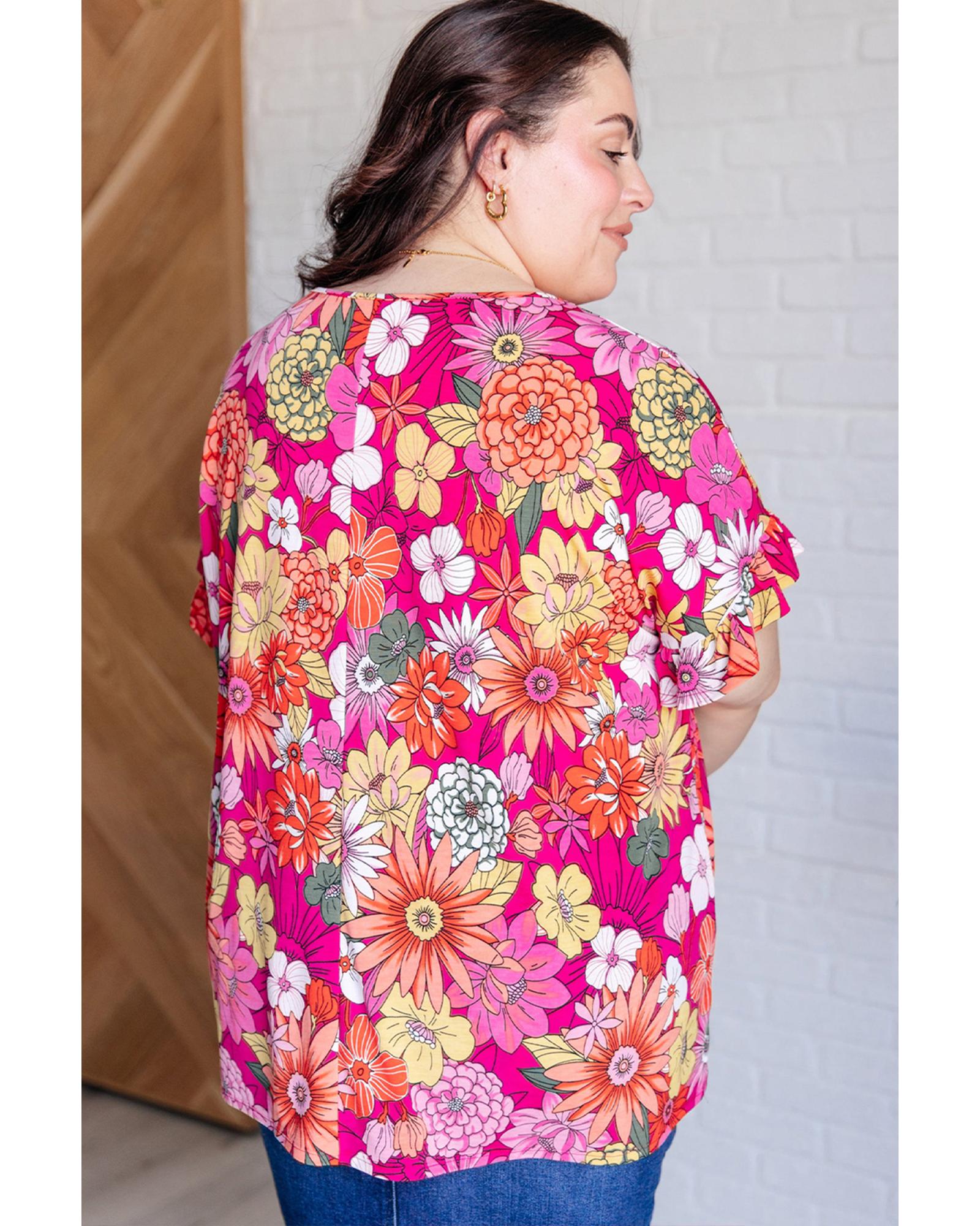 Rose Plus Size Floral Print Ruffle Short Sleeve Blouse - 3X