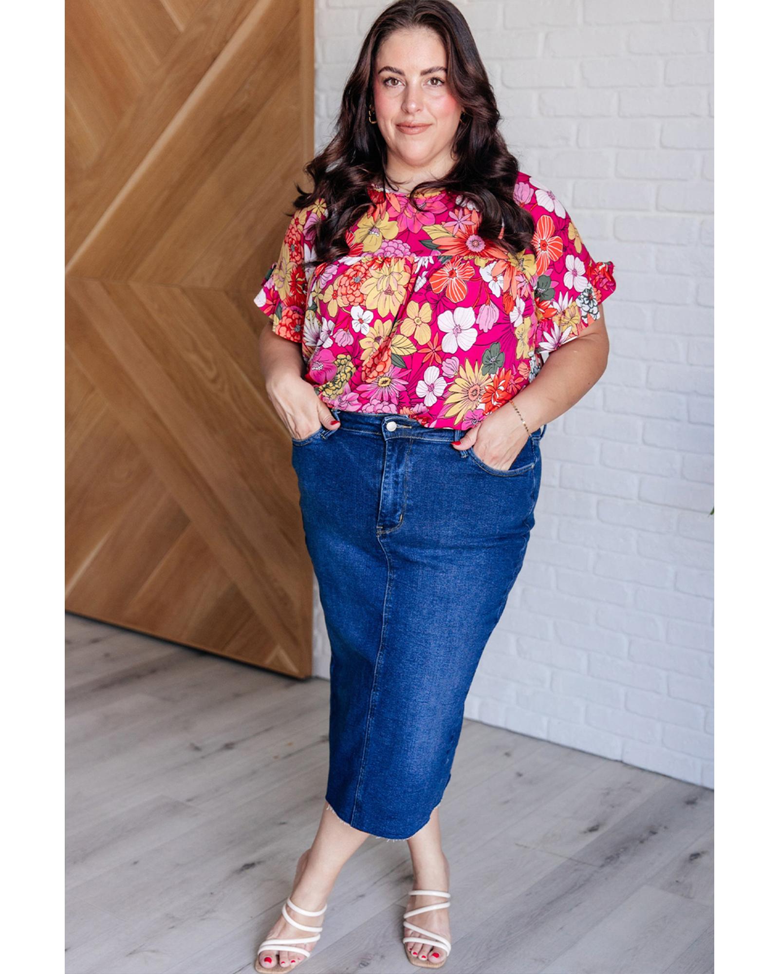 Rose Plus Size Floral Print Ruffle Short Sleeve Blouse – 2X