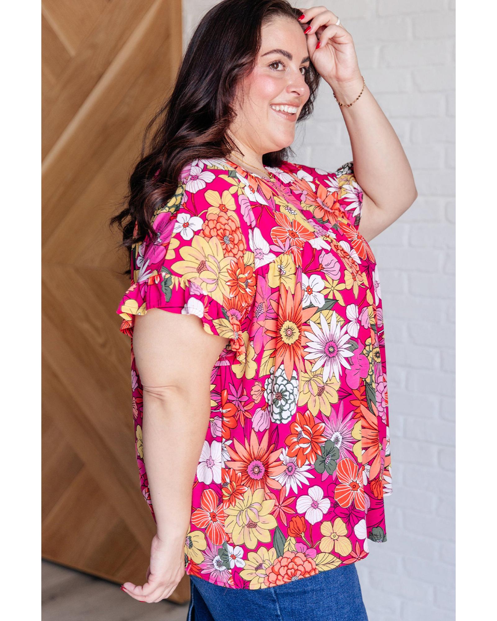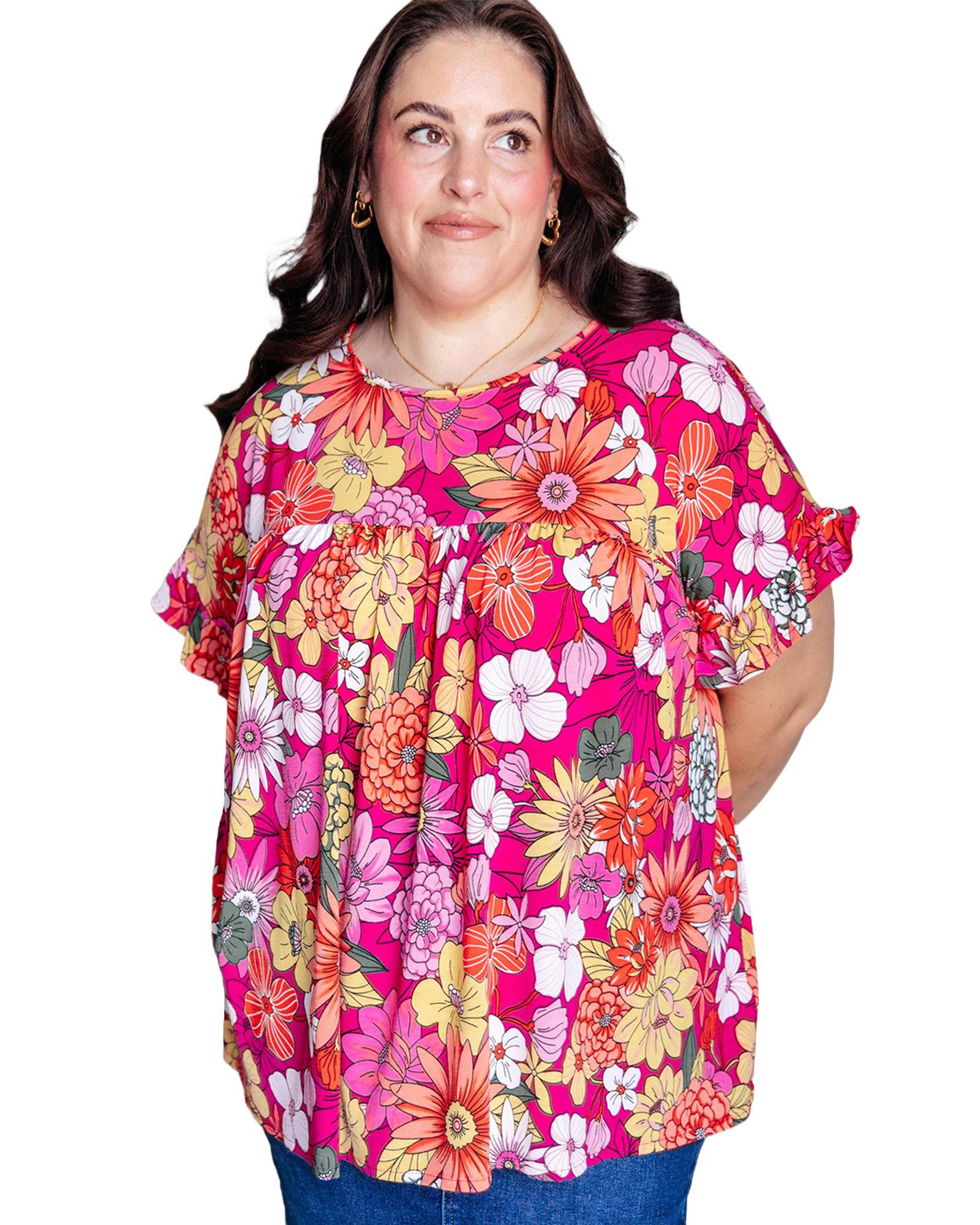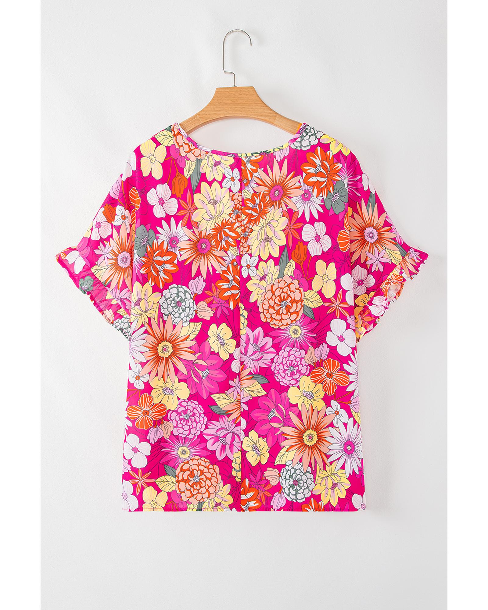 Rose Plus Size Floral Print Ruffle Short Sleeve Blouse – 3X