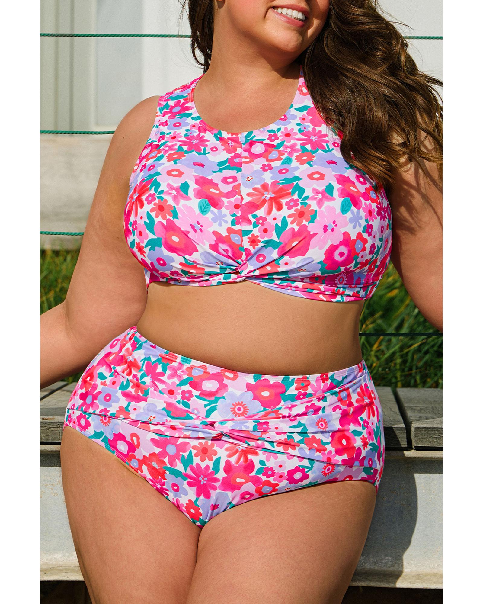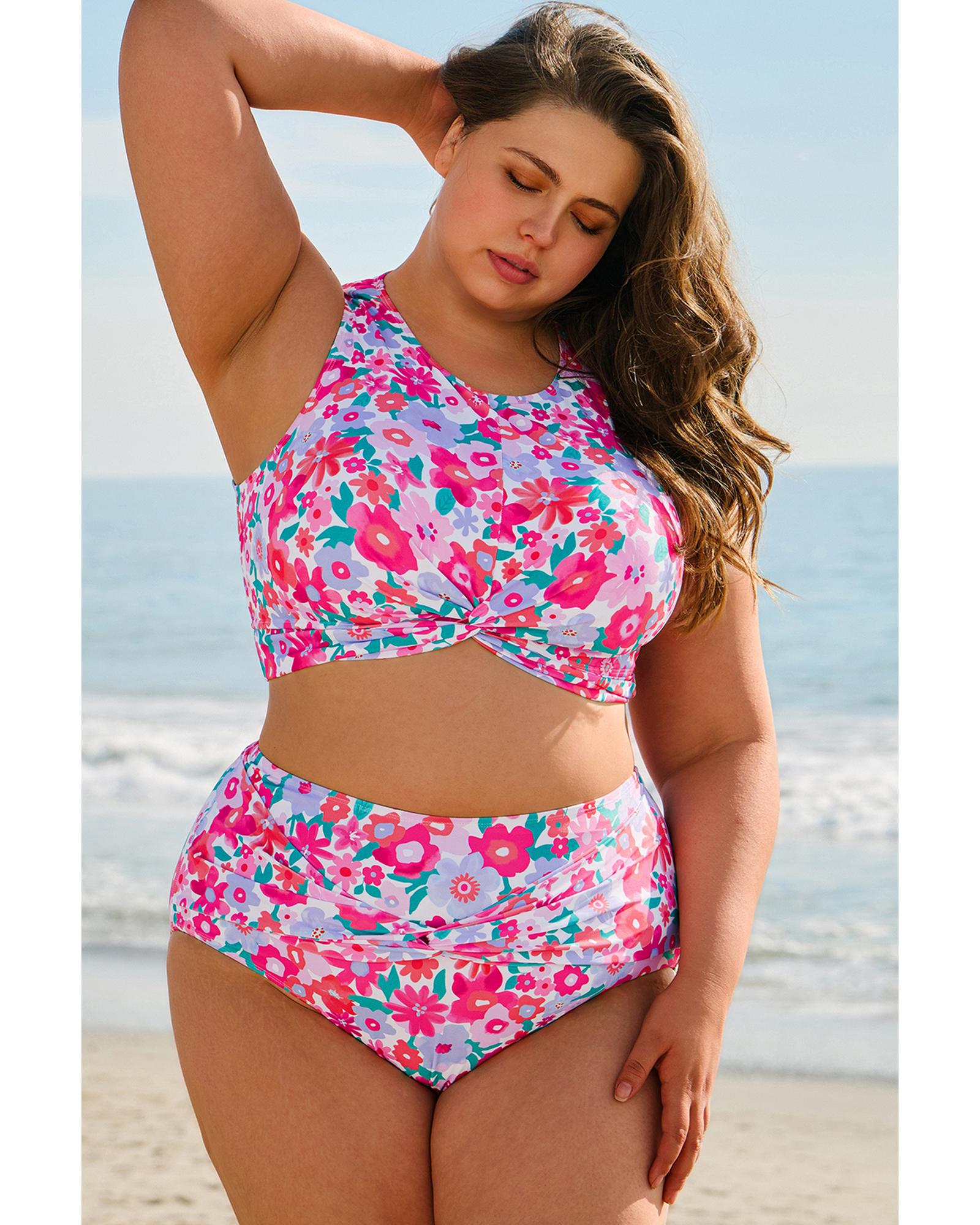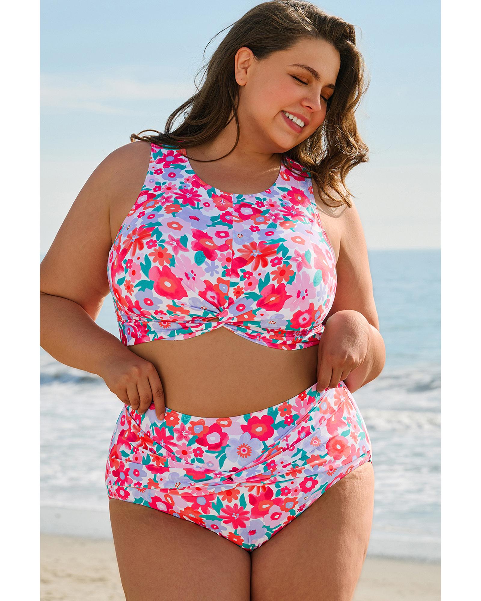 Rose Plus Size Floral Print Twisted High Waist Bikini Set – 2X