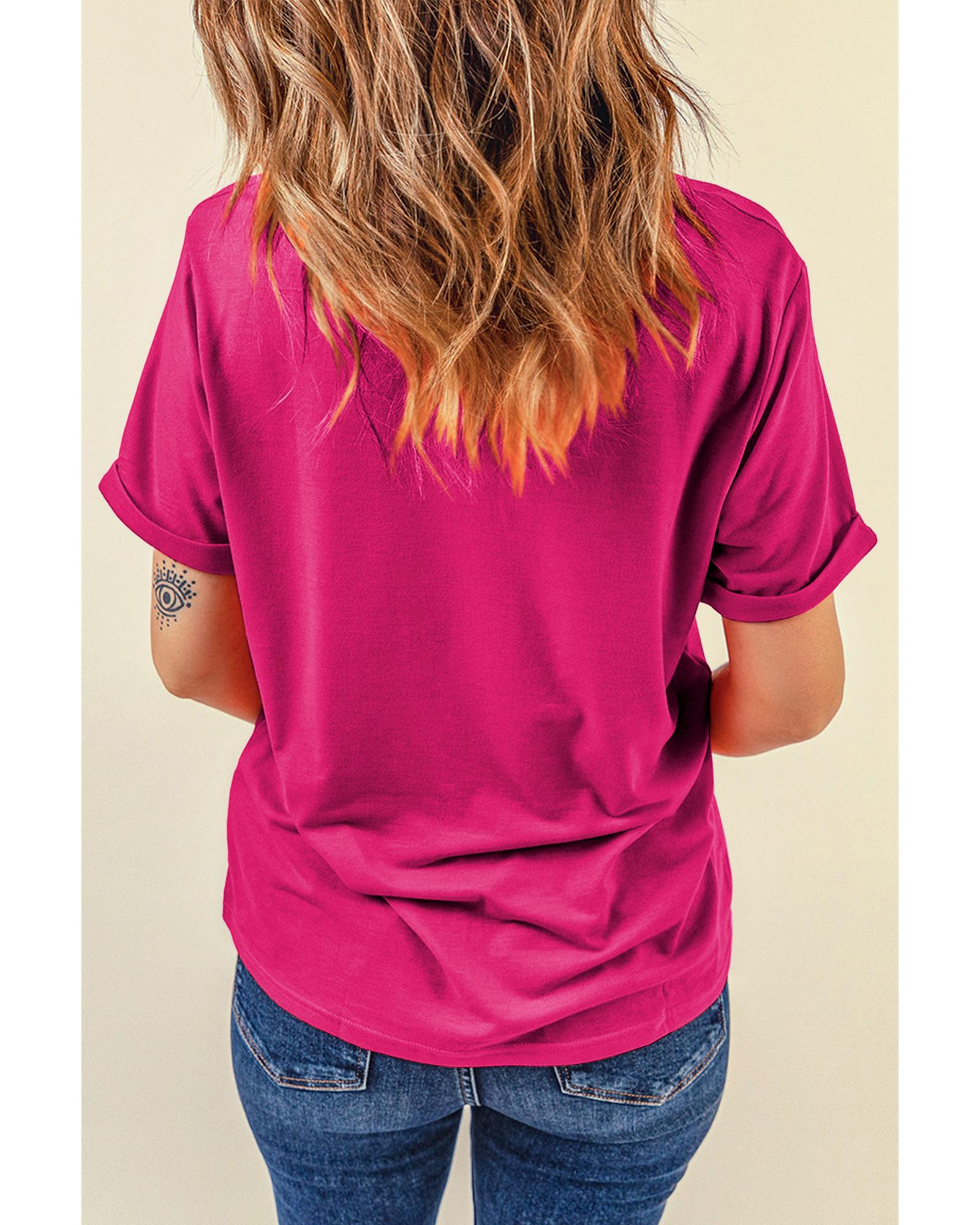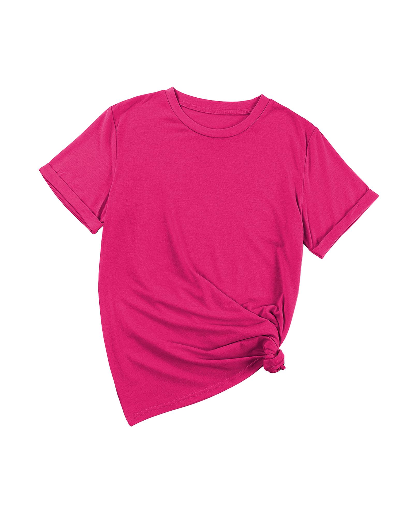 Rose Red Casual Plain Crew Neck Tee – 2XL