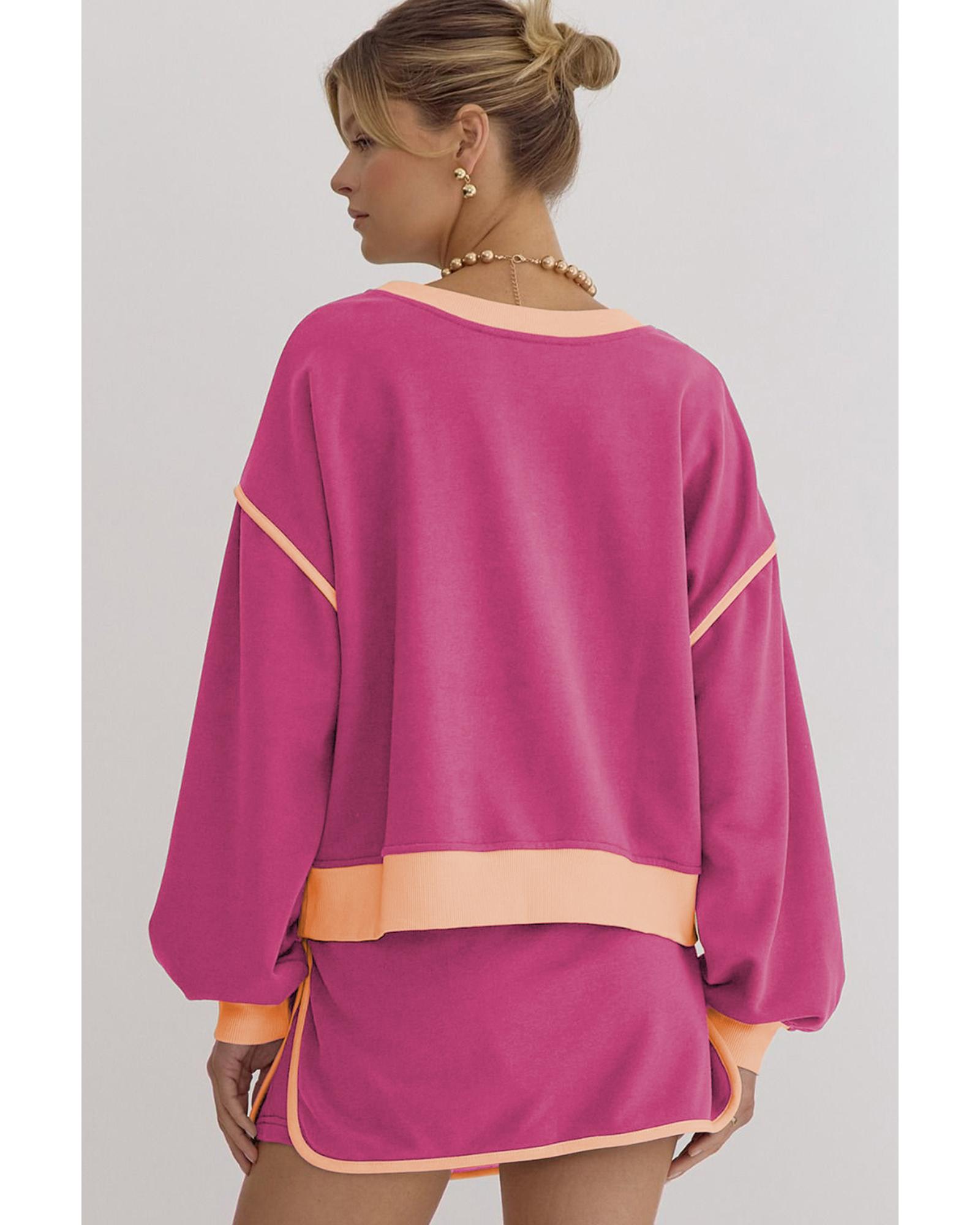 - Rose Red Color Contrast Loose Pullover and Lace